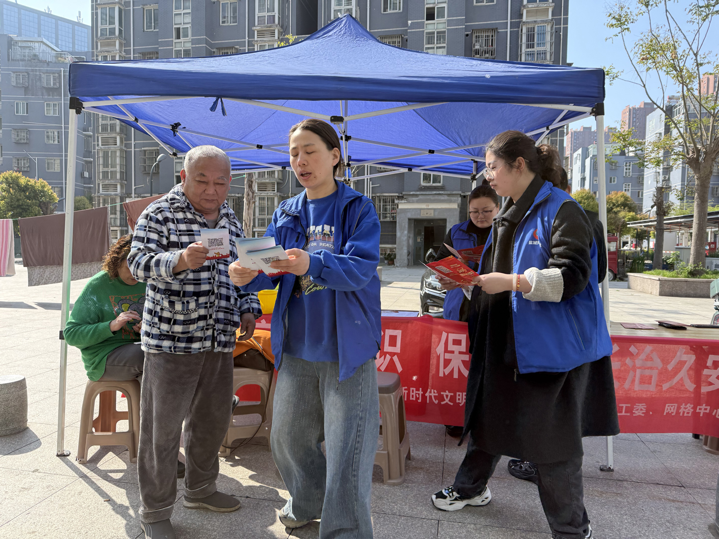 村居工作人员在瑞都新城小区广场,向过往居民发放国家安全教育宣传页,围绕“什么是国家安全”“公民在维护国家安全中的权利与义务”“如何识别和举报危害国家安全的行为”等内容进行细致讲解。针对小区物业,工作人员重点强调了日常管理中涉及的信息安全、出入登记、可疑情况上报等注意事项;面向小区商户,则结合经营实际,提醒大家注意防范网络诈骗、保护顾客隐私、拒绝传播违法信息,切实履行好商户的安全责任。此外,还充分利用网格微信群、电子显示屏、社区公告栏等平台,持续推送信用政策解读、诚信案例等内容,扩大宣传覆盖面。针对老年群体等重点人群,网格员、志愿者开展上门宣讲服务,用接地气的语言讲解信用知识,确保宣传教育无死角。