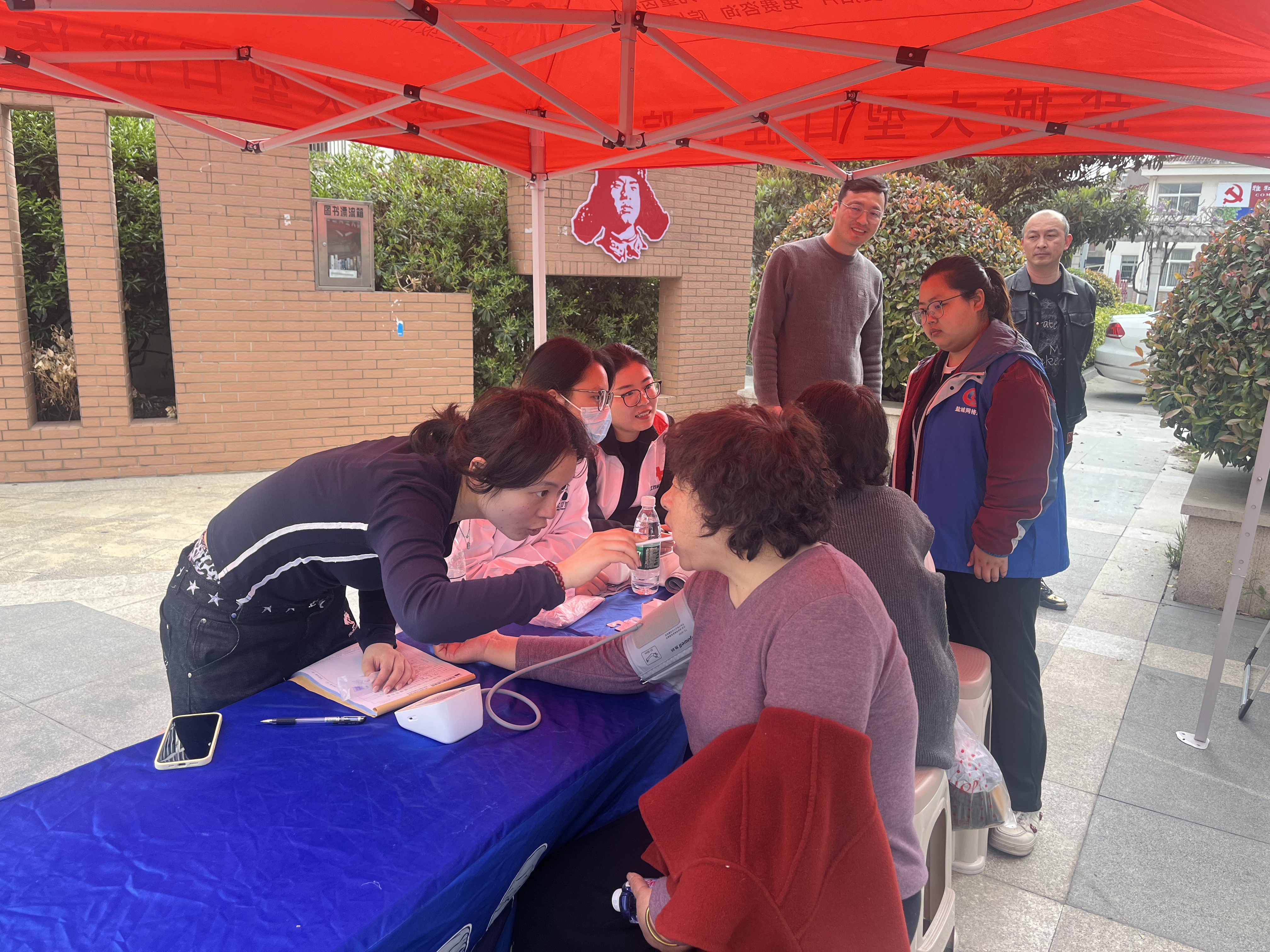 活动现场,红色的服务帐篷在社区广场格外醒目,盐城双宝口腔医院的医护团队携带专业检查设备,为居民们提供免费口腔检查、血压测量、健康咨询等一站式服务,网格员与志愿者早早来到现场,布置桌椅、准备物资,引导居民有序参与义诊。