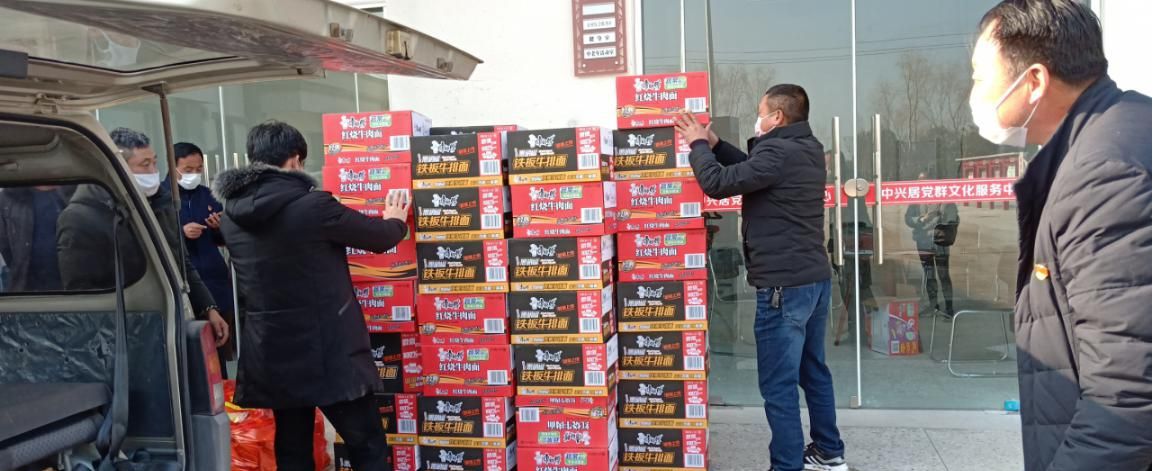 2月9日,该镇新中居90后的居民杨阳,将价值万余元的200箱牛奶捐赠给镇政府;2月11日,在该镇经营拉面的青海籍企业主马有四么乃购买了三箱康师傅红烧牛肉面、两箱六个核桃、两箱红豆黑米粥等食品,冒雨送到金港居值守点,对连续奋战在一线人员表示慰问。