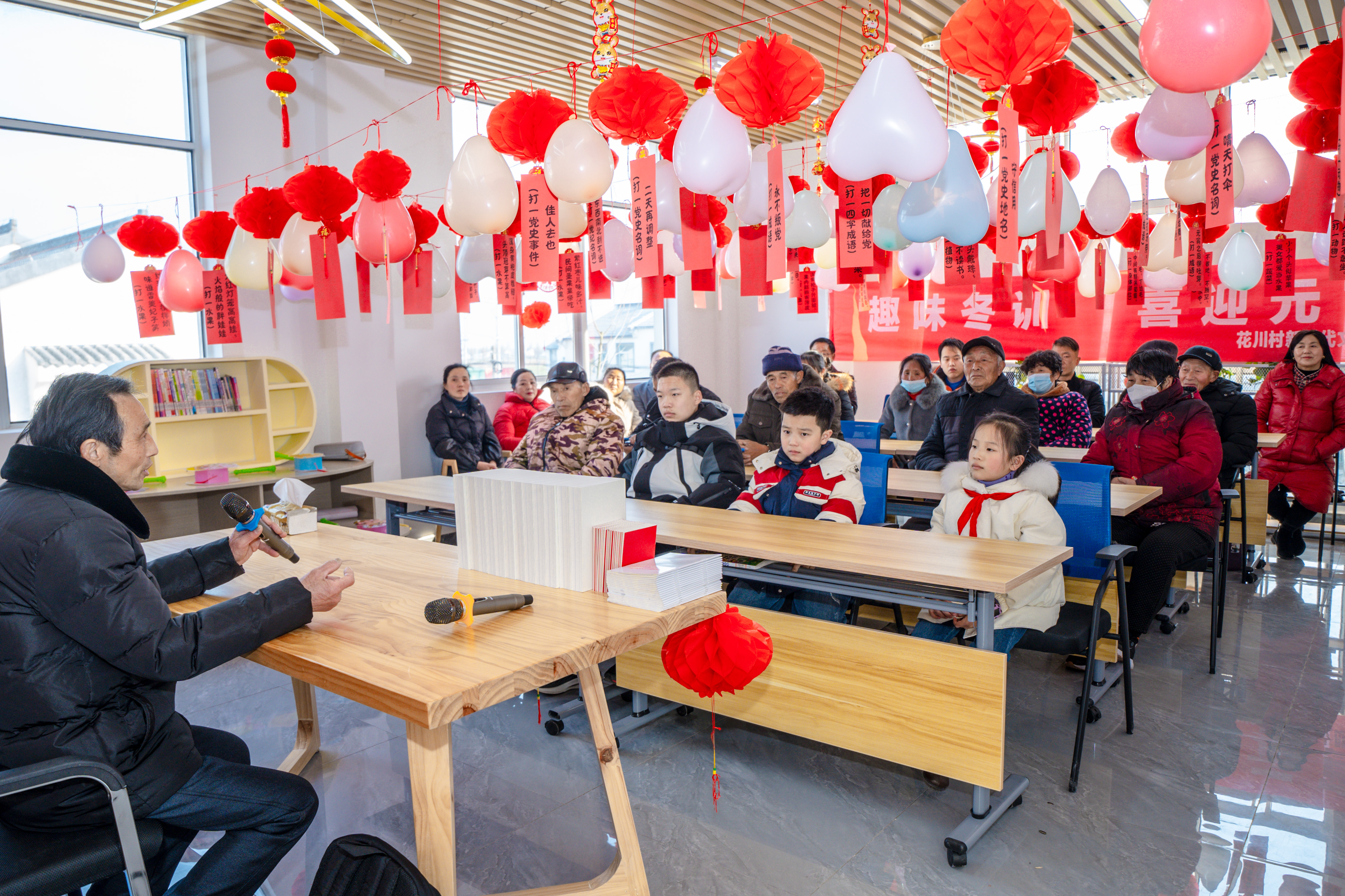 正月十五,“趣味冬训,喜迎元宵”闹元宵活动在花川村新时代文明实践所上演,活动现场,大朋友小朋友们欢聚一堂,老党员为大家分享了红色故事,讲述了花川村历史。灯谜竞猜活动中,谜面涵盖党史、政策理论、年俗文化等。花川村党支部通过“传统文化+送理论”新竞猜模式,将理论宣传与传统文化活动相结合,让理论春风吹进百姓心中。