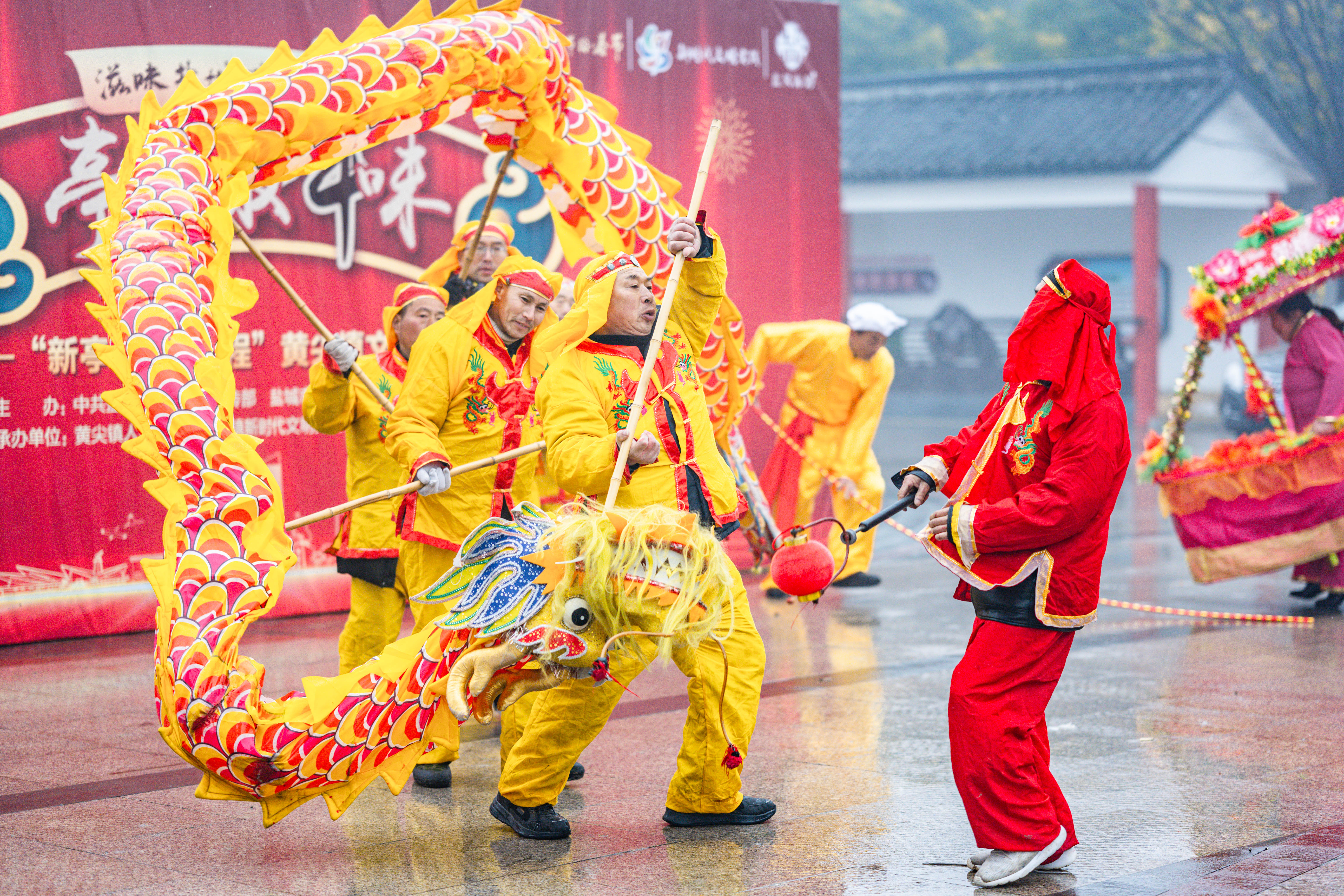 大年初一,舞龙舞狮队一出现在黄尖街道上,就引起民众阵阵欢呼。居民朋友们纷纷表示:“舞龙舞狮可难见到呢,还是小时候看过的,现在的小孩子恐怕都没看过,政府有心了!”该镇党委书记李浩在热闹声中为沿街作业的环卫工人送去新春慰问。