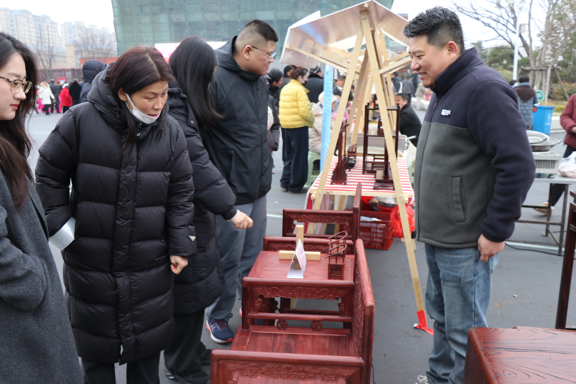 非遗好物聚响水,国潮新风焕生机。在文体广场非遗展销专区,掐丝珐琅画、传统虎头鞋、费氏肉松、双港粉丝、卢氏玉雕等多项响水特色非遗项目集中亮相,传承人现场展示制作技艺,让传统技艺可看、可赏、可体验、可购买。市民们穿梭在各个展台之间,细细观赏、精心挑选,沉浸式感受非遗魅力。“掐丝珐琅画做工精致、色彩鲜亮,既有传统韵味又很有艺术感,真是太惊艳了!”年轻的赵女士欣喜地说。雕刻、扎染等传统技艺现场制作展示,引得市民驻足围观、频频点赞,近距离感受非遗的匠心与传承。