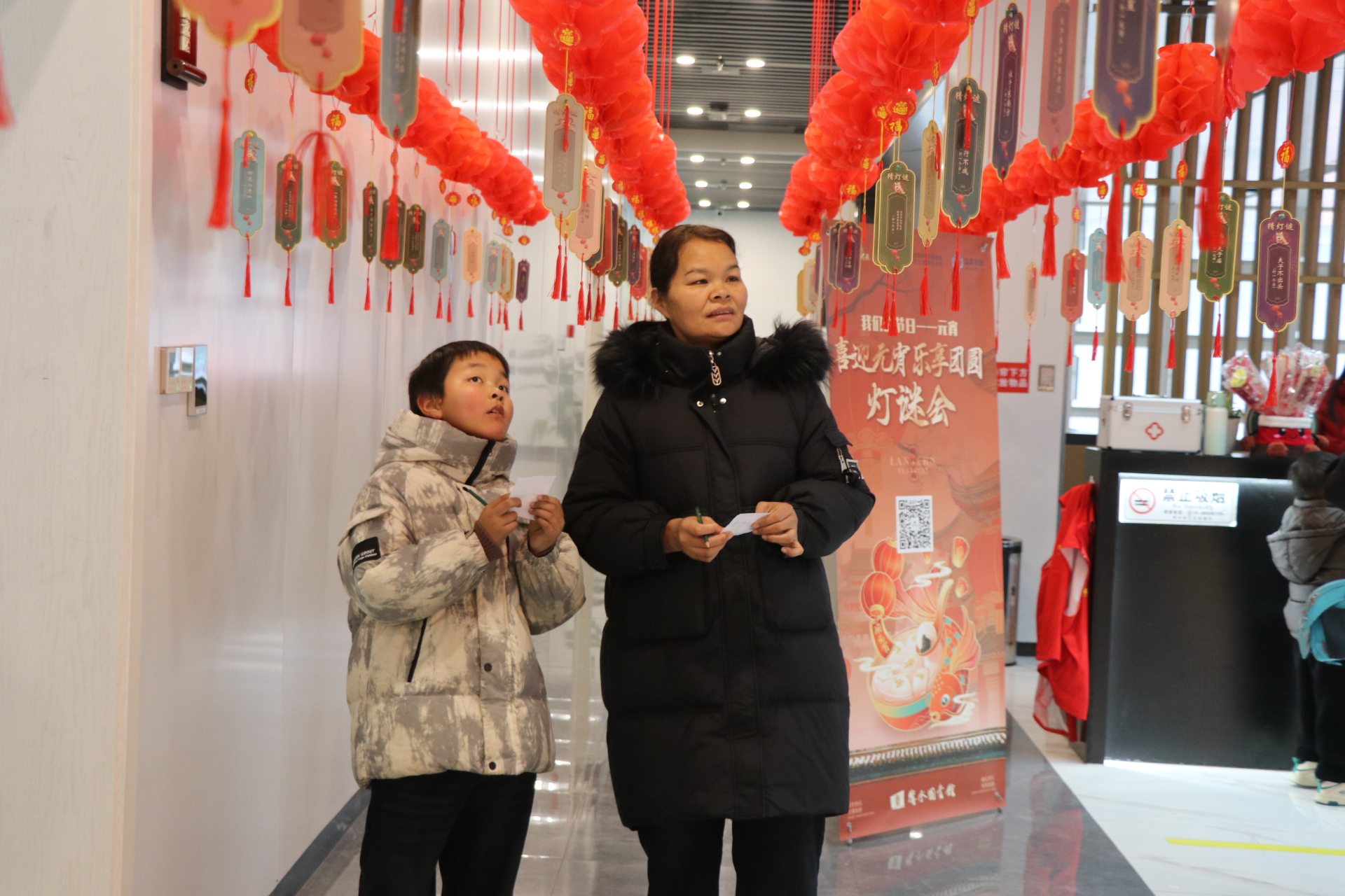 华灯初上月圆夜,猜谜赏灯乐开怀。在县图书馆及各分馆,趣味猜灯谜活动热闹开场,谜题涵盖传统文化、生活常识等内容,妙趣横生、老少皆宜,市民们踊跃参与、凝神思索,大家在益智互动中感受传统民俗乐趣。“我猜对3个,抽奖中了玩具枪,特别开心!”小学生陈凡兴奋地说。