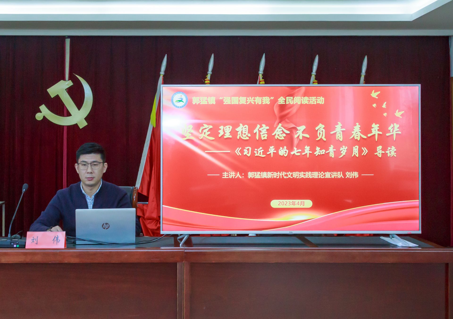 郭猛镇新时代文明实践理论宣讲队成员、宣传委员刘伟以“坚定理想信念 不负青春年华——《习近平的七年知青岁月》导读”为主题,向全镇入党积极分子、青年党员开展全民阅读专题宣讲。参加阅读活动的广大青年纷纷表示要认真学习,深刻感悟总书记“青春是用来奋斗的”的深刻内涵,在学思践悟中扣好人生第一粒扣子,不忘初心、砥砺前行,成就无悔的青春。