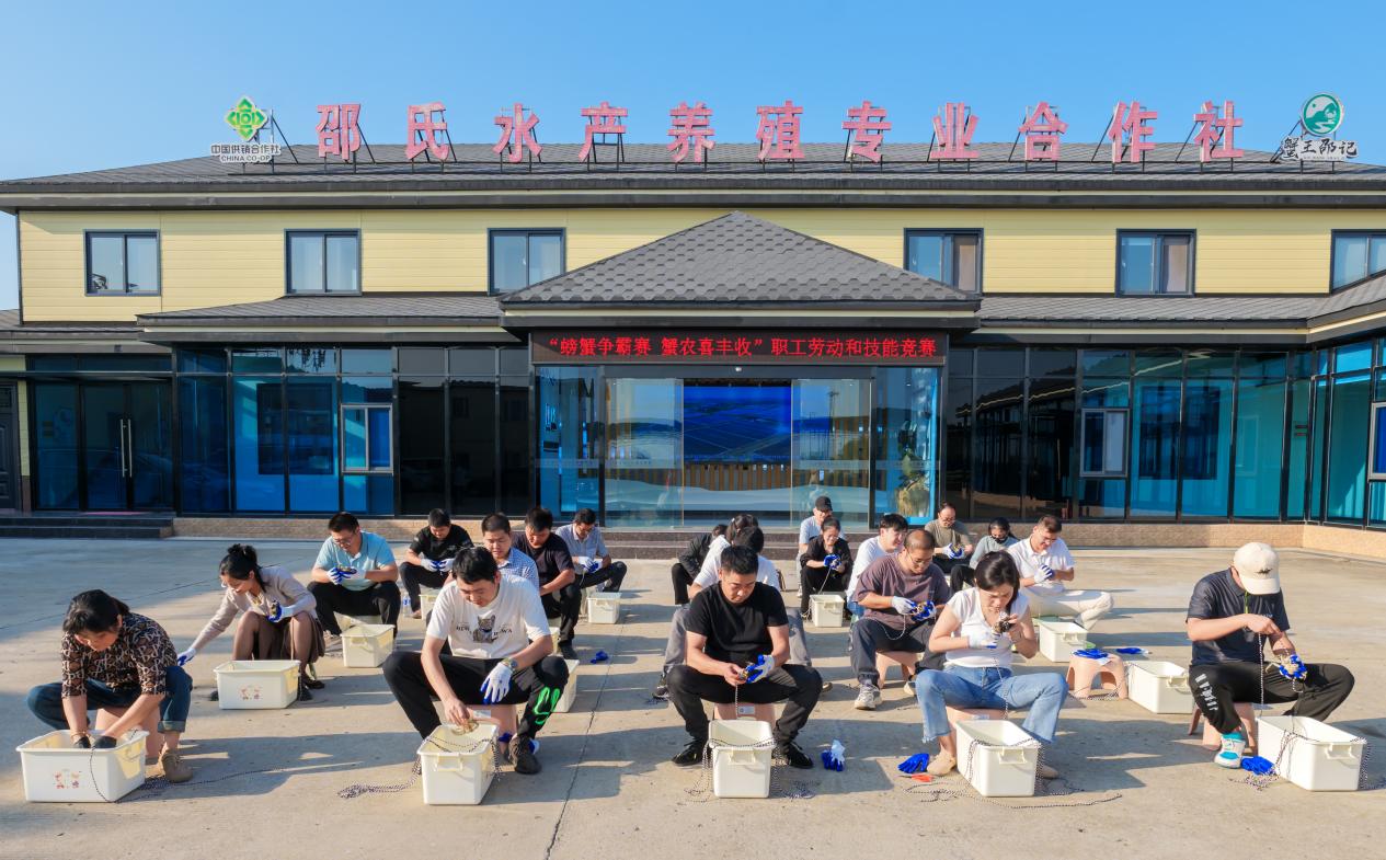 随后,进入紧张激烈的实操环节。工作人员为每位参赛选手准备了10只雌雄规格相对一致的河蟹,要求大家在规定的时间内完成捆扎。比赛开始后,选手们迅速进入状态,他们手法娴熟、动作迅速,将一只只螃蟹牢牢地捆扎起来。整个比赛现场气氛热烈、秩序井然,充分展现了尚庄镇职工们良好的精神风貌和精湛的职业技能。