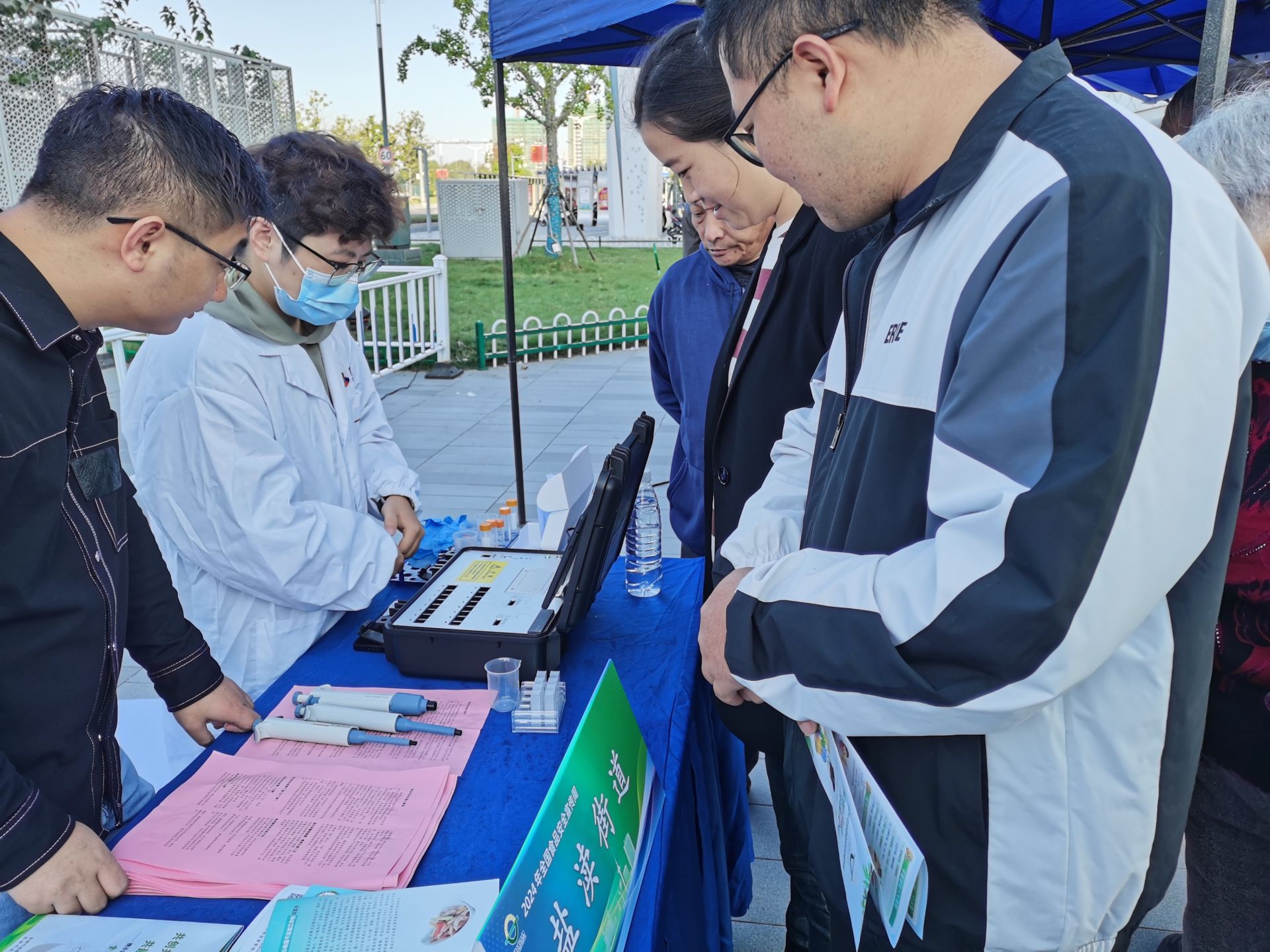 活动现场设置了宣传拱门、展板、咨询台,区食安委各成员单位向过往群众开展展位咨询活动,发放食品安全宣传资料,现场向群众科普食品安全知识,提升群众食品安全意识。盐渎街道还在现场设置快检台,开展蔬菜农药残留测验,邀请现场群众参与活动。盐渎街道检测人员对群众送检的蔬菜进行现场取样检测,检测蔬菜农残有无超标并现场告知检测结果。