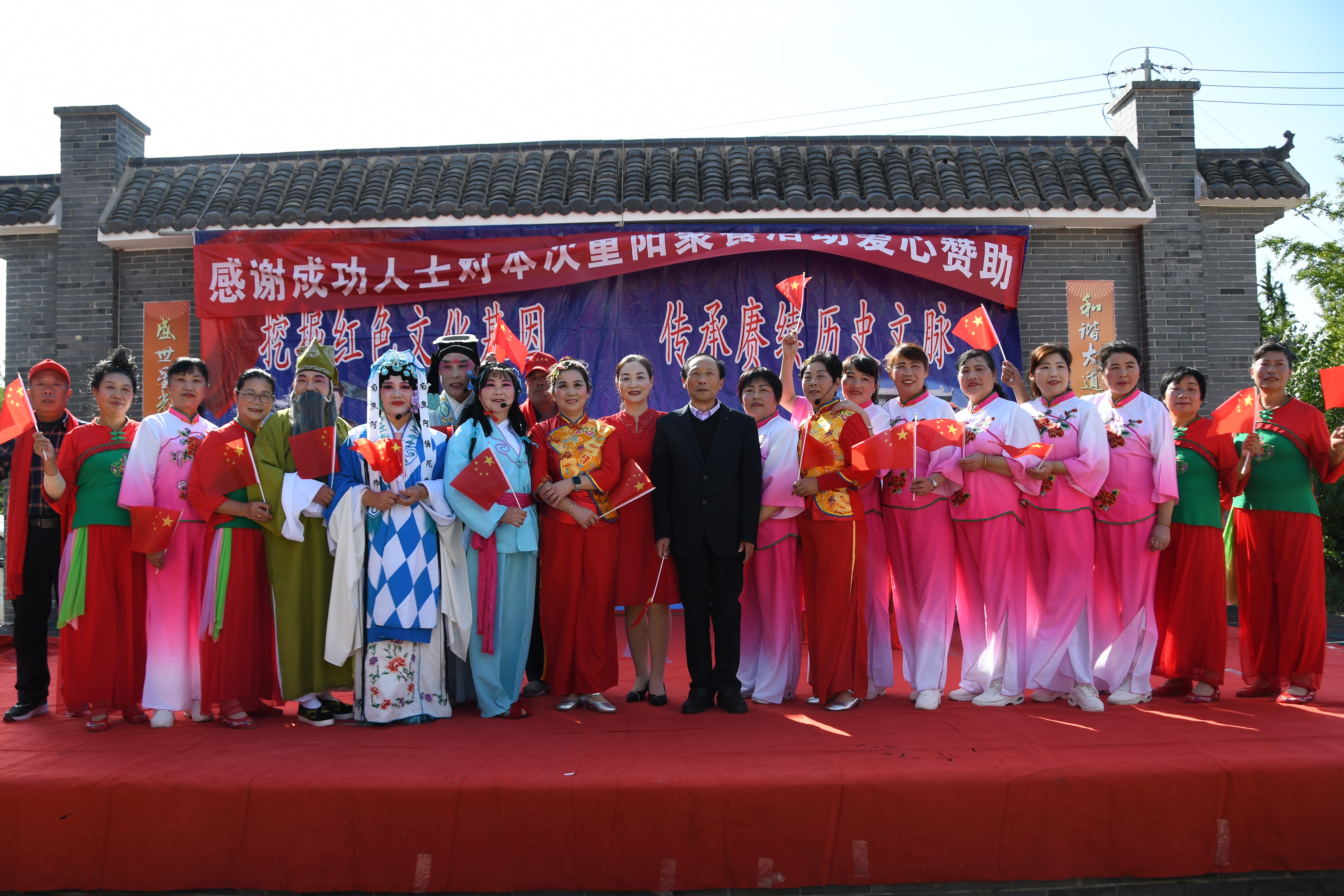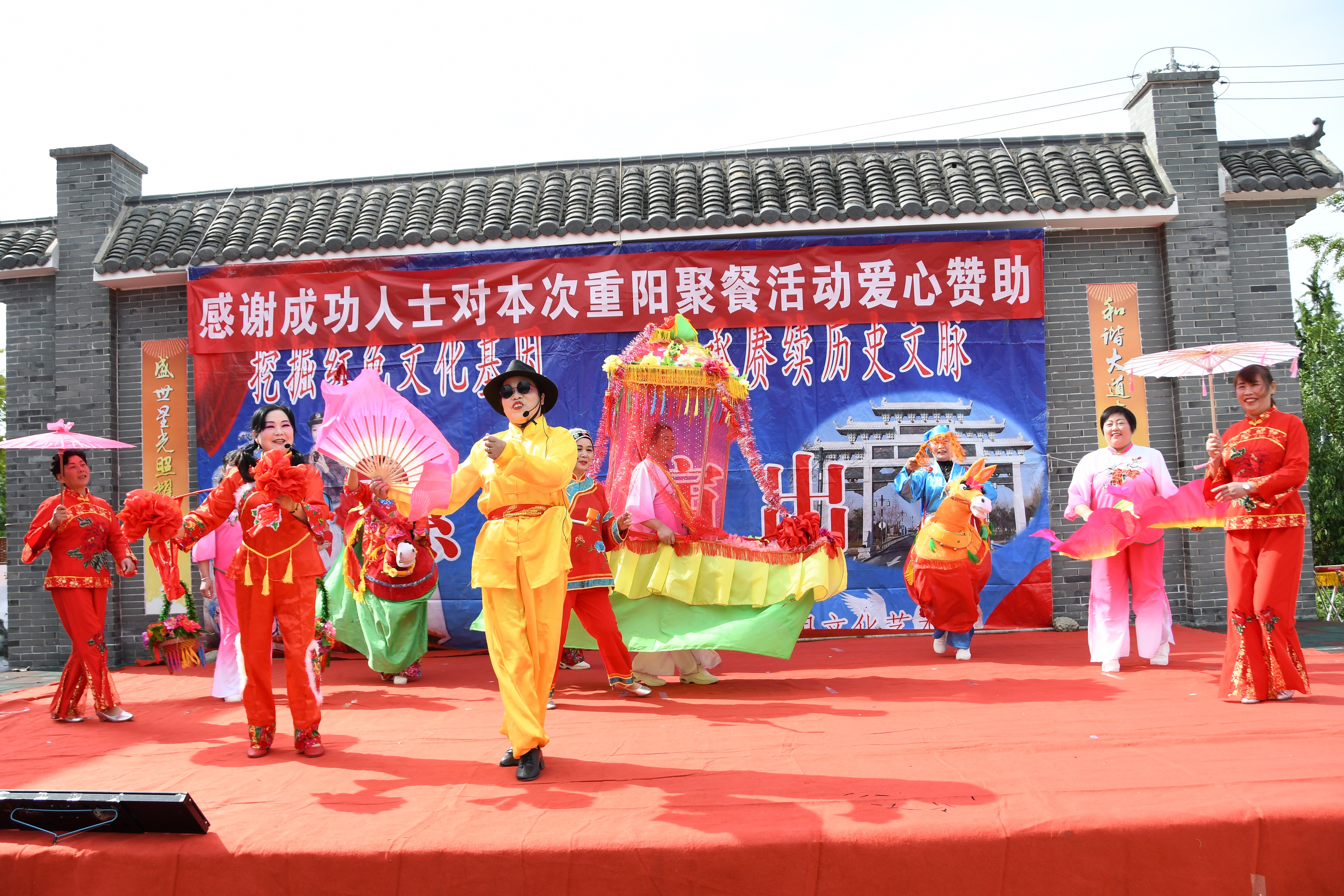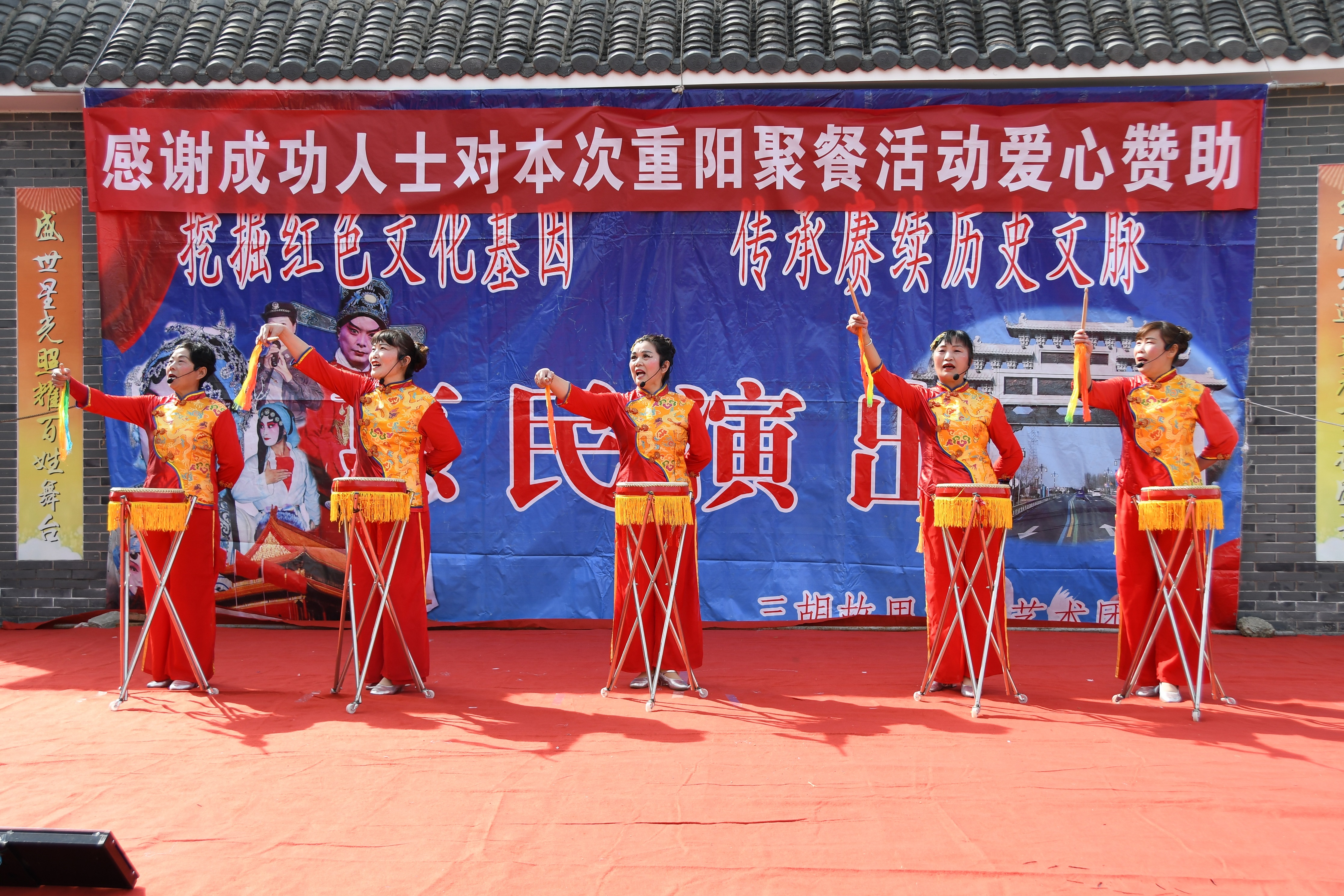午餐期间,精彩的文艺演出在村文化广场拉开帷幕。由“三胡故里文化艺术团”带来的节目单内容丰富:表演唱《夸老板》热闹开场,淮剧《书房会》《探寒窑:窑外》《莲花庵》让戏迷过足瘾,打鼓说唱《三胡礼赞》、打莲箱《创造奇迹奔小康》充满乡土气息,舞蹈《拥军秧歌》《猪八戒娶媳妇》《十送红军》更是赢得老人们的阵阵喝彩,最后大合唱《没有共产党就没有共和国》将现场气氛推向高潮。老人们看得津津有味,时不时跟着旋律打节拍、哼上几句。