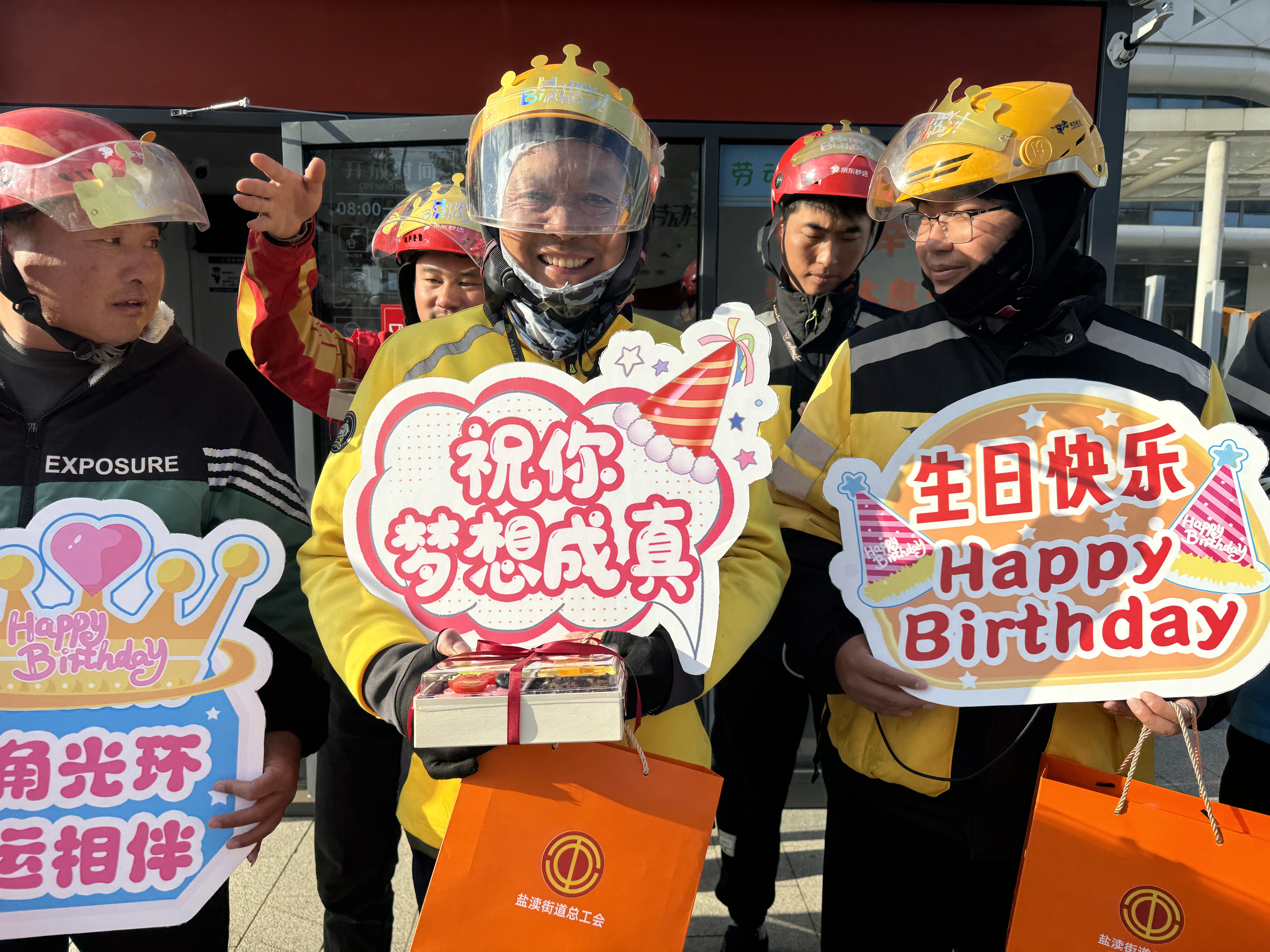 “平时都是忙着给别人送餐,没想到今天工会‘娘家人’为我们过生日,心里特别暖!”一位外卖骑手激动地说道,“这个驿站就像我们自己的家,能在这里歇歇脚、喝口水,还能和大家一起过生日,感觉特别被尊重、被惦记。”
