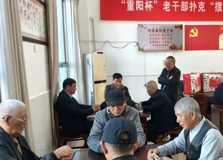当日上午,郭猛镇老干部活动中心热闹非凡,“桑榆未晚重阳乐・掼蛋象棋赛友情”主题益智友谊赛在此举行,20余名老干部齐聚一堂。活动分象棋对弈与掼蛋竞技两大项目,象棋赛区,老干部们沉着落子,楚河汉界间尽显谋略;掼蛋赛场,搭档默契配合,牌局间欢声笑语不断。“输赢不重要,和老伙计们一起玩才开心!”一位参赛的老干部笑着说。经过两轮角逐,活动评选出优胜选手并颁发奖品,既丰富了老干部精神生活,也增进了彼此情谊。