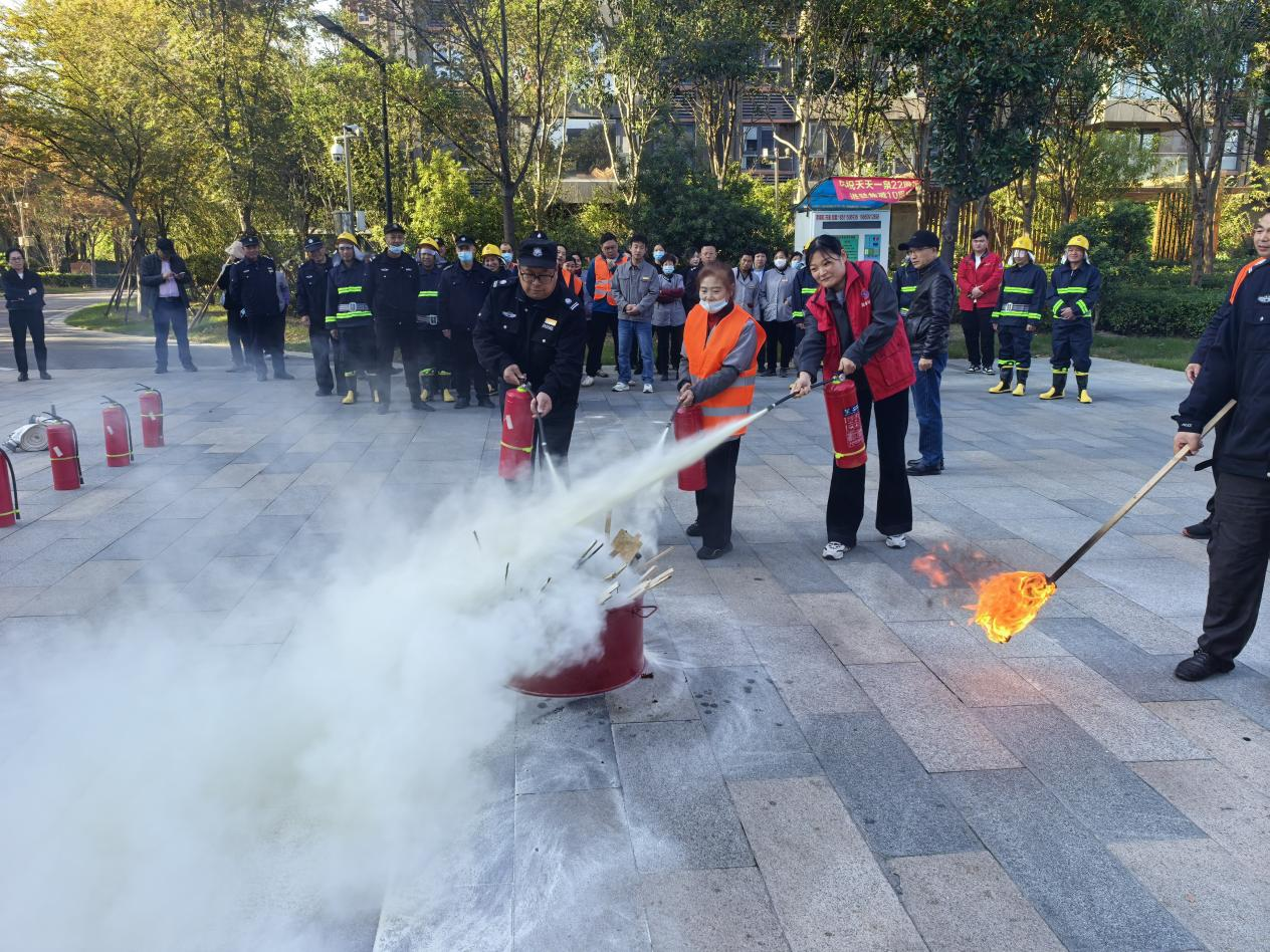 近日,潘黄街道旭日社区联合万达大公馆、万达金街组织了一场贴近实战的消防安全演练,旨在强化社区工作人员、网格员及物业员工安全用火用电知识,掌握火场报警、疏散、逃生及初期火灾扑救等关键技能。