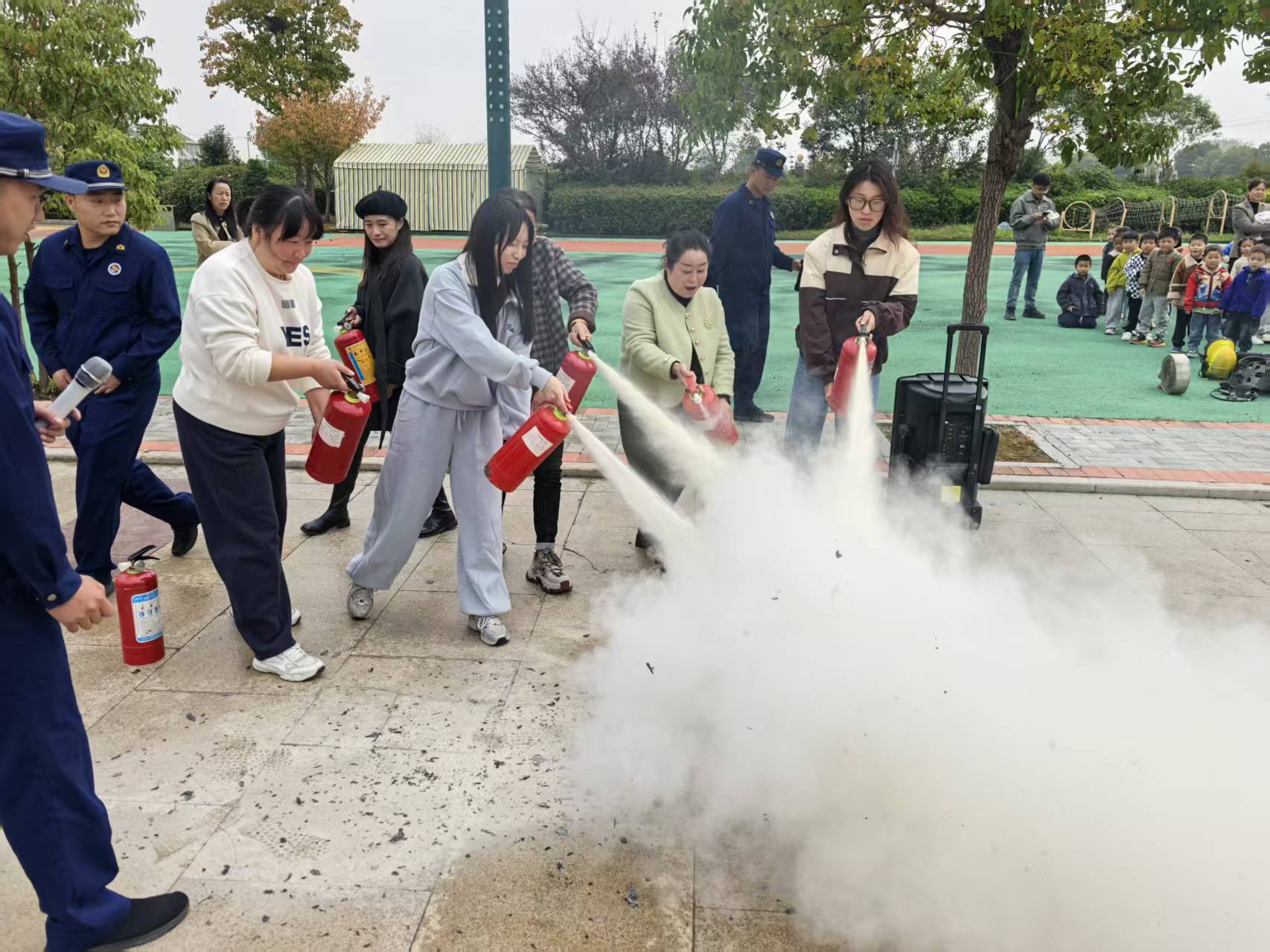 防灾减灾消防宣传进校园。消防安全,教育先行。秦南中心幼儿园开展消防安全演练,让全园师生在听、学、练、玩中解锁安全技能,为快乐生活筑牢防护屏障。消防员叔叔带来了“工具小课堂”和五花八门的消防“神器”,现场演示灭火器使用方法,“提瓶身、拔保险、握喷嘴、压手柄”,老师们轮番实操,把灭火技能牢牢记在心里。此次消防演练,将知识讲解、实战操作与趣味体验相结合,既提升了师生的应急避险能力,也在孩子们心中种下了安全的种子。