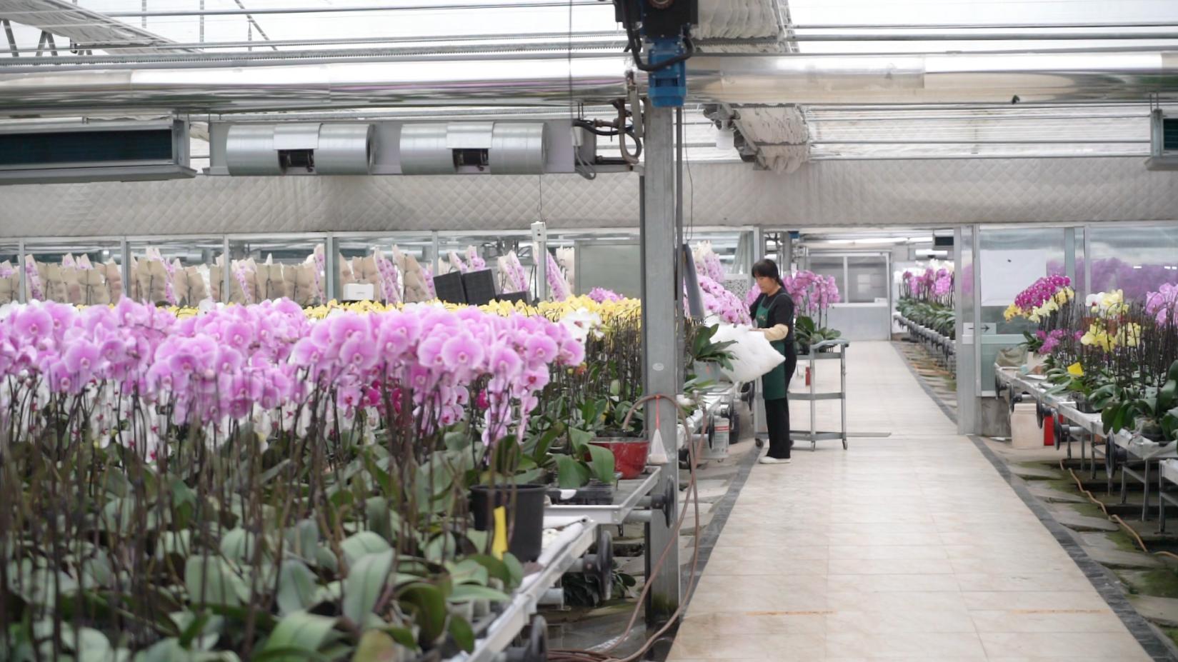 如果说传统牛肉产业焕发新活力为盐都乡村振兴注入了强劲动能,那么智慧花卉产业的发展则是为盐都乡村振兴“添香增色”。在盐都区台创园美青花卉生产基地,智能温室里的蝴蝶兰花型饱满、长势旺盛。基地采用地源热泵温控、智能水肥一体化、LED补光等先进技术,精准匹配花卉生长需求,使A级及特级蝴蝶兰品率达到70%。眼下,盐都台创园已培育美青花卉等一批龙头企业,其中美青花卉年出口切花100万株,产品远销日本、荷兰等多个国家和地区,年出口创汇超2500万日元。
