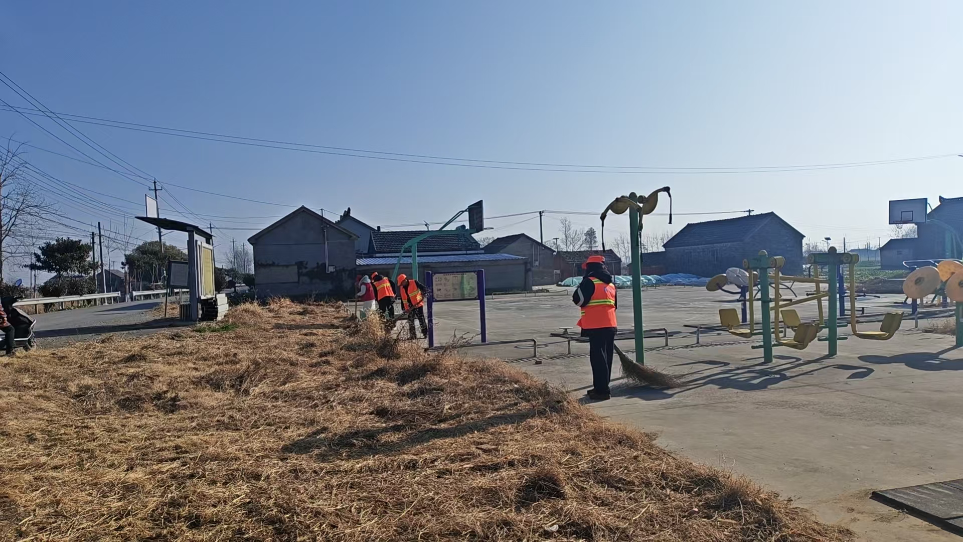 此次清洁行动聚焦“三清”核心要求,在清脏治乱的基础上,重点推进河道清淤疏浚工作。在村庄河道边,工作人员站在简易作业平台上,用工具清理河道内的水草、漂浮物及淤泥,对河道两岸的杂草、垃圾进行拉网式清理,确保河道畅通、水体清洁。此外,村里还对休闲健身广场的健身器材、公共座椅进行擦拭和检修,对广场内的枯草、落叶进行集中清运,让村民的休闲活动场所更加整洁安全。