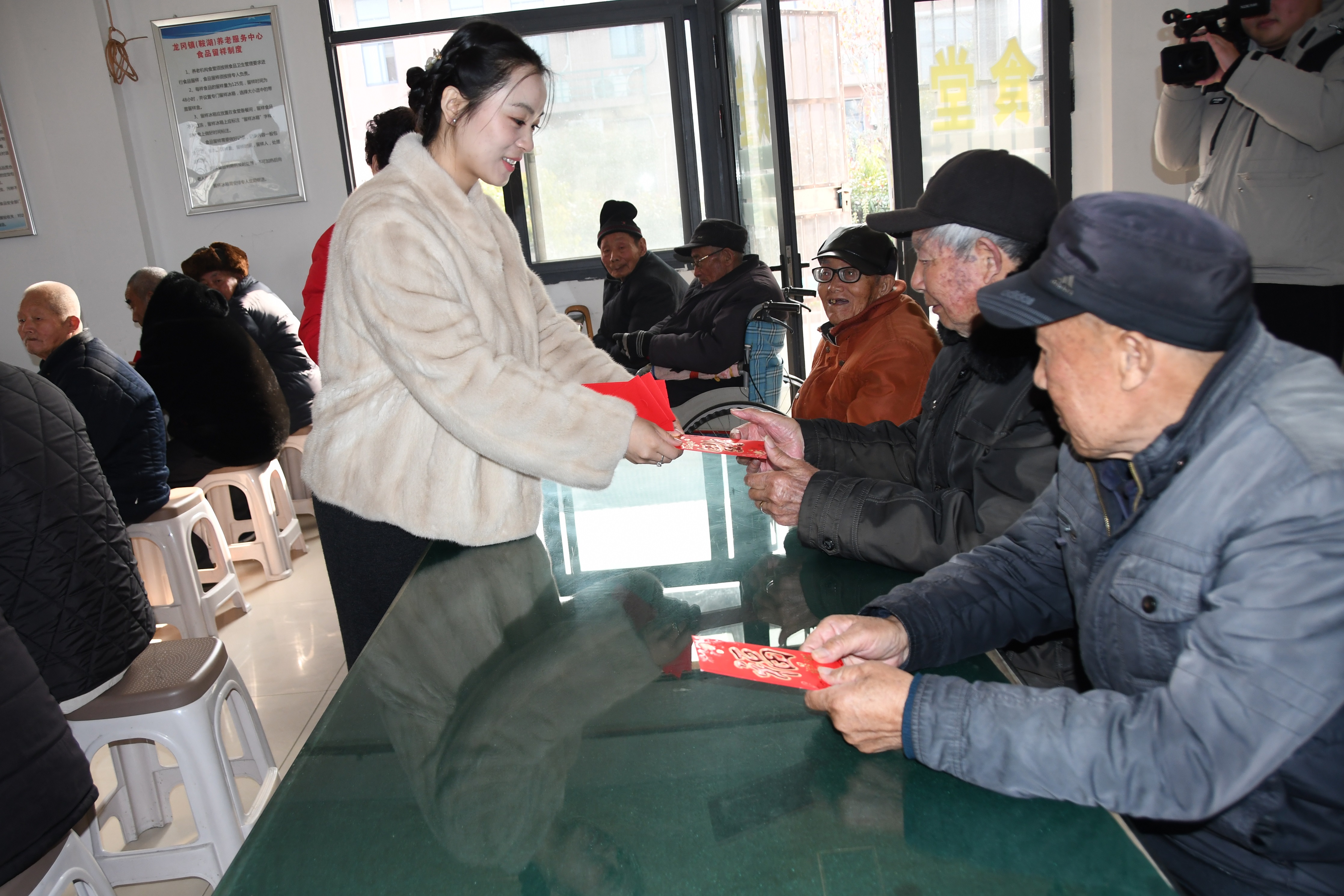 作为龙冈初中杰出校友,年仅30余岁的倪瑞阳在灯具行业创业有成,始终心系家乡、践行善举。此次活动中,他与姑奶奶倪士翠一同为老人们发放压岁钱和慰问礼品,用实实在在的关怀温暖老人心田。倪氏家族传承百年“一乡善士”家风,多年来持续向敬老院捐赠钱物,还帮扶贫困学生、关爱孤寡老人,以实际行动诠释青年企业家反哺家乡的责任担当。