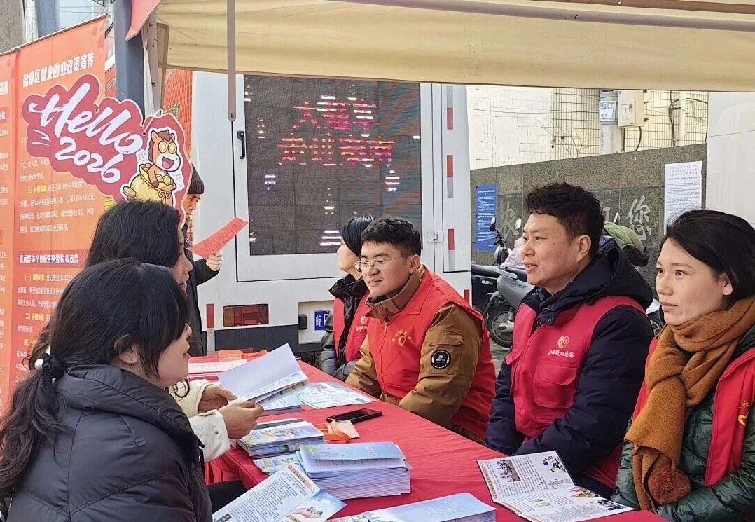 春风送岗暖民心,精准对接促就业。为抢抓春节期间返乡劳动力集中的黄金期,扎实推进稳就业、保民生的工作,2月12日上午,盐都区秦南镇举办了2026年就业大篷车送政策宣传暨企业招聘活动。
