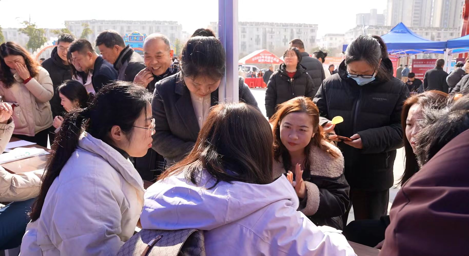 招聘会现场年味浓郁、人声鼎沸,新春氛围扑面而来,往来市民驻足停留、咨询不断,逛街休闲与求职择业同步实现。求职者们或认真翻阅企业资料,或与招聘负责人深入交流,或仔细倾听政策讲解,眼神里满是对新年新生活的期待。企业方主动推介、真诚沟通,在热闹的商圈氛围中高效对接、精准觅才,人岗相遇的每一幕,都书写着盐都新春最昂扬的奋斗姿态。