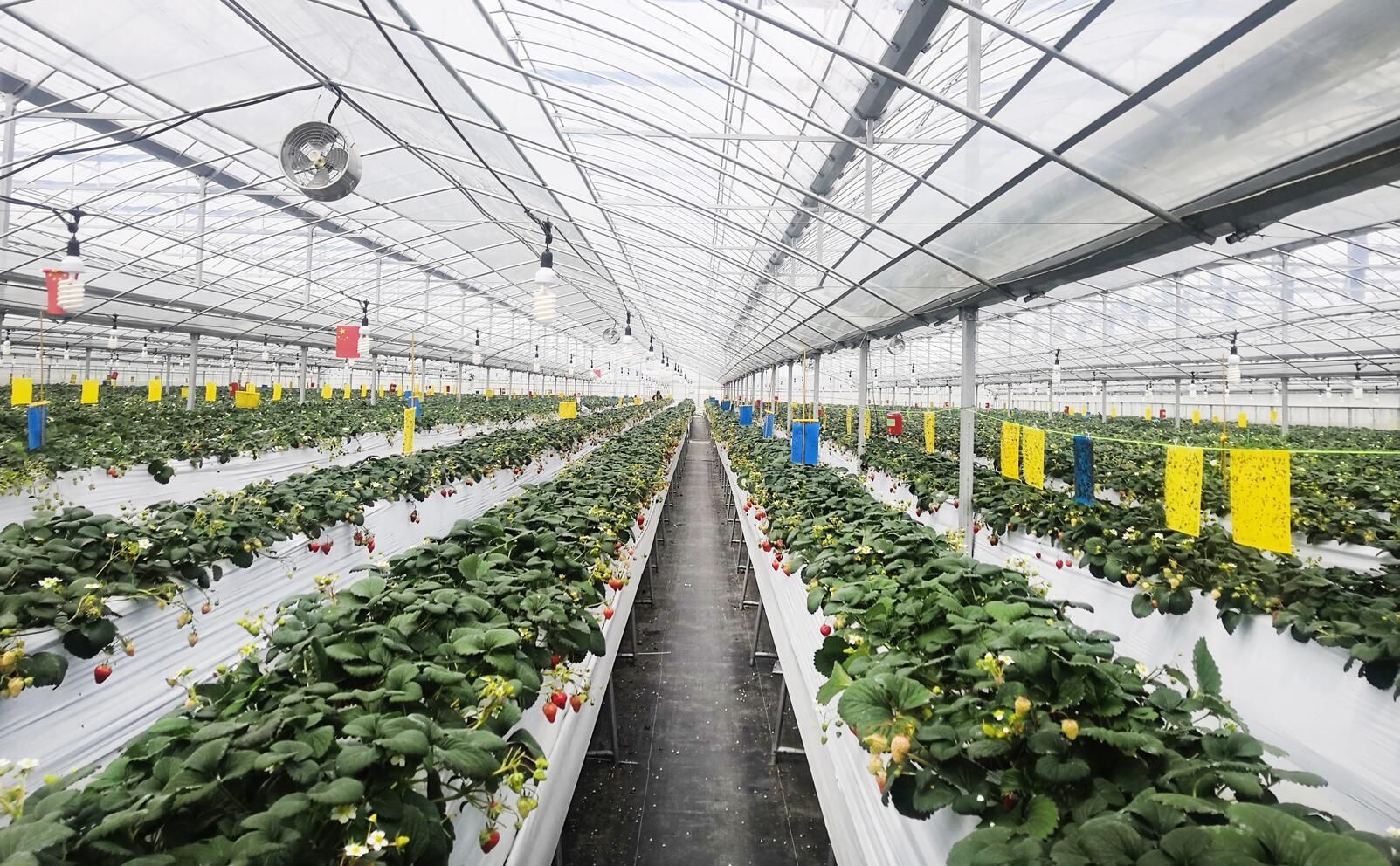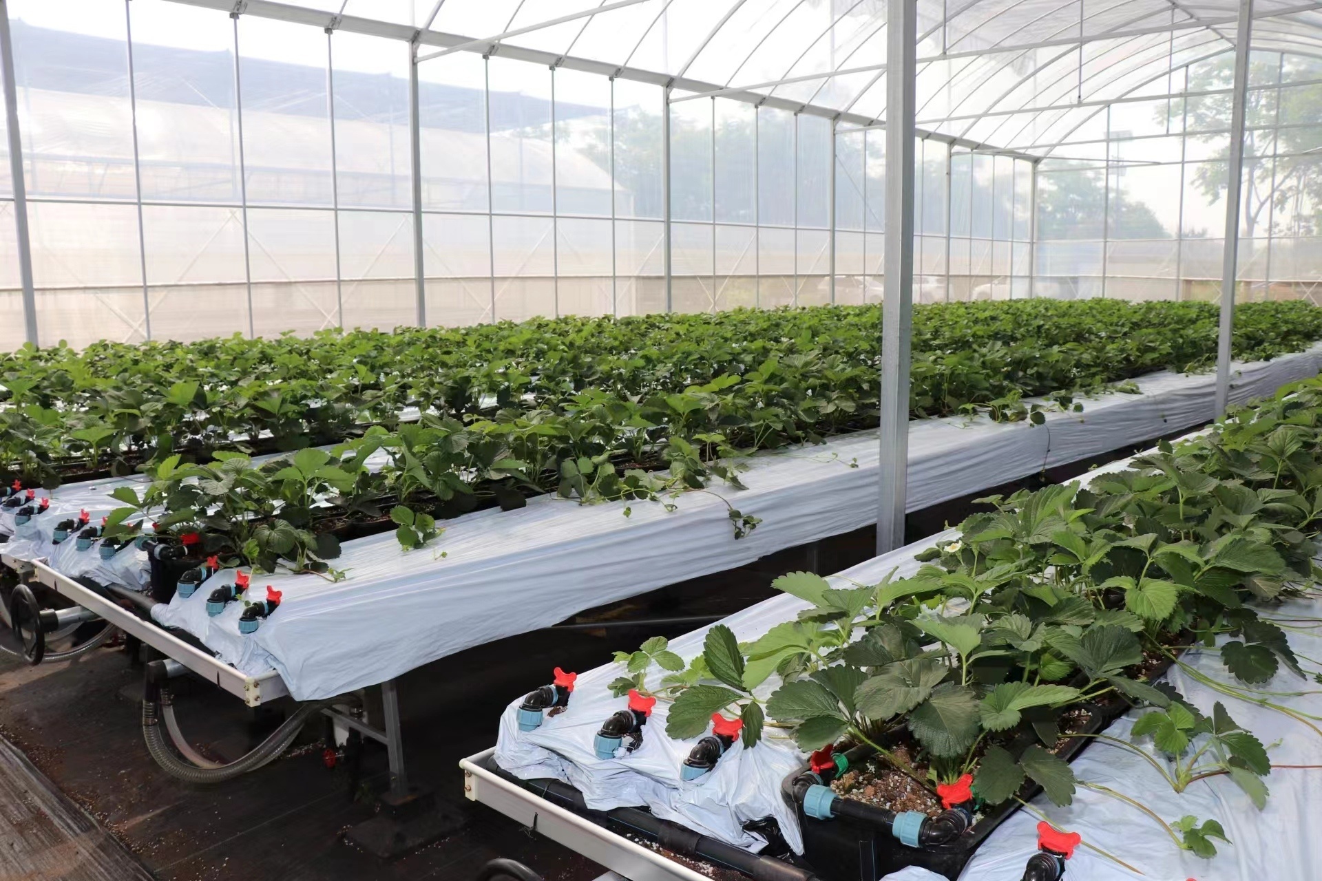 为加快草莓产业提档升级,延长产业链,盐都着力发展草莓种苗市场,2024年共新建种苗育繁园26亩,内设现代化温室大棚、自动化育苗系统以及组培实验室等,确保从种苗选育到种苗培育的全过程都能在最佳环境下进行。“盐都草莓”始终引领创新步伐,不断探索模式转变,积极采用水肥一体机、智能控制器、湿温限控器进行远程管理,成功推出了立体种植、A字型栽培及空中栽培等多元化种植模式,并逐步在全区推广。利用草莓“秋种冬收”、稻谷“夏种秋收”的季节性特点,盐都区积极探索“稻莓轮作”新模式,有效防止耕地“非粮化”“非农化”和耕地撂荒等现象发生,在提升草莓口感品质的同时,也进一步提升了园区的集体收入,实现土地效益最大化。