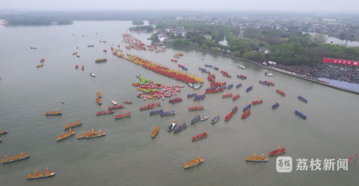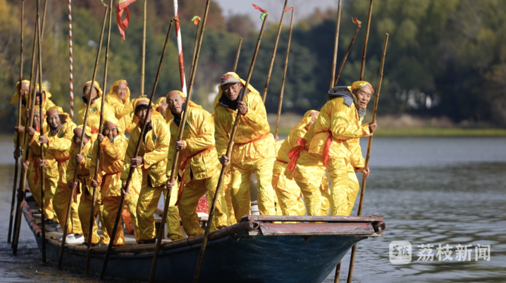 飞篙走桨,弄潮击浪,不同于船娘摇橹船的悠然,溱湖上更为壮阔的场面是溱潼会船。“溱潼会船甲天下”,国家级非物质文化遗产溱潼会船,最早可追溯到800多年前的南宋时期。每逢清明节,数百条船只和上万名会船选手,齐聚于这片广袤的水域,千篙万桨,号子激昂,整个湖面都为之震颤。