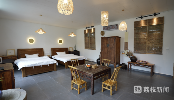 踏入“五亩半”,仿若踏入一条时光的回廊,许多家具都是孙爱勤从当地村民处悉心搜罗而来的。那些承载着岁月痕迹的老物件,带着里下河地区独有的风格与气息,它们或有着斑驳的漆面,或雕刻着古朴的花纹,无一不散发着历经沧桑后的温润之美。这些老家具,不仅仅是民宿的装饰,更是乡村历史与文化的见证者,是孙爱勤对这片土地深情厚谊的具象化表达。