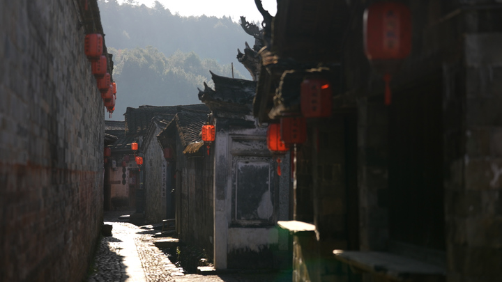 这种“九厅十八井”的建筑风格,迥异于同属客家文化遗存的土楼和围龙屋。古村民居依山面水舒展排开,方正有序、连为一体。长街古巷互为连通,宛若天开,两侧水渠清澈,直通各户,至今仍有村民在此洗菜淘米,捶打衣服。