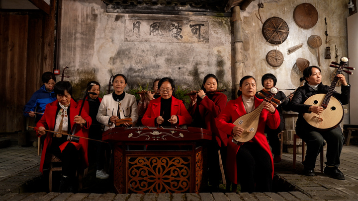 很特别的是,清光绪年间,培田村就设立女子学堂,教授女子读书写字、理财记账,织布绣花。一百多年后,这所小小的学堂“容膝居”依然还在。“庭来竹友心胸阔,门对松岗眼界宽”的楹联阐明了容膝居提高妇女修养和开阔她们眼界的办学初衷;天井影壁上“可谈风月”四个字,更是体现了吴氏先人思想的开明。如今,嫁入培田的媳妇们组成了一支女子乐团,从零开始研习闽西客家“十番音乐”。每当夜幕降临,她们忙完庄稼和家务,就会聚在一起演奏。虽然没有观众,但丝竹声声,风月无边,这或许也是“读”的一部分。