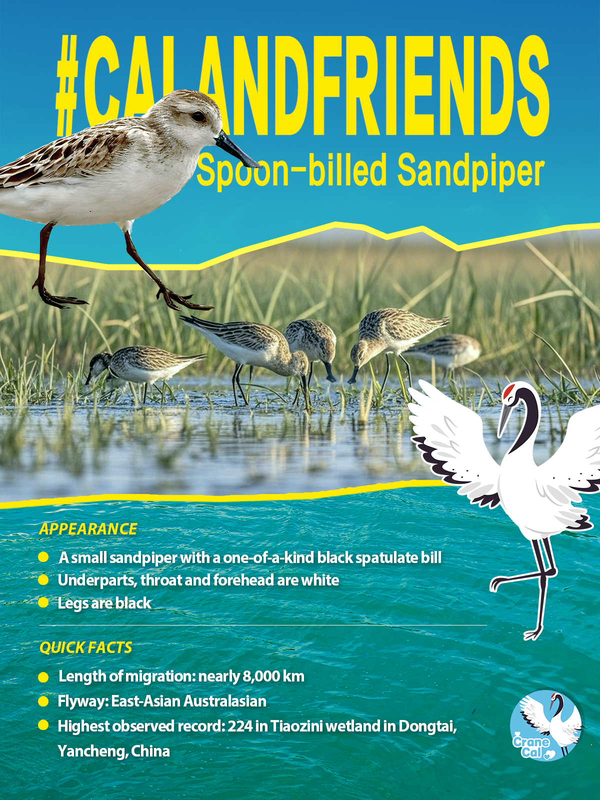 丹顶鹤、勺嘴鹬和麋鹿被称作盐城的“吉祥三宝”。作为海滩上的小艺术家,勺嘴鹬以它独特的觅食方式,与丹顶鹤的优雅站立形成有趣对比,共同书写着生命的奇迹。