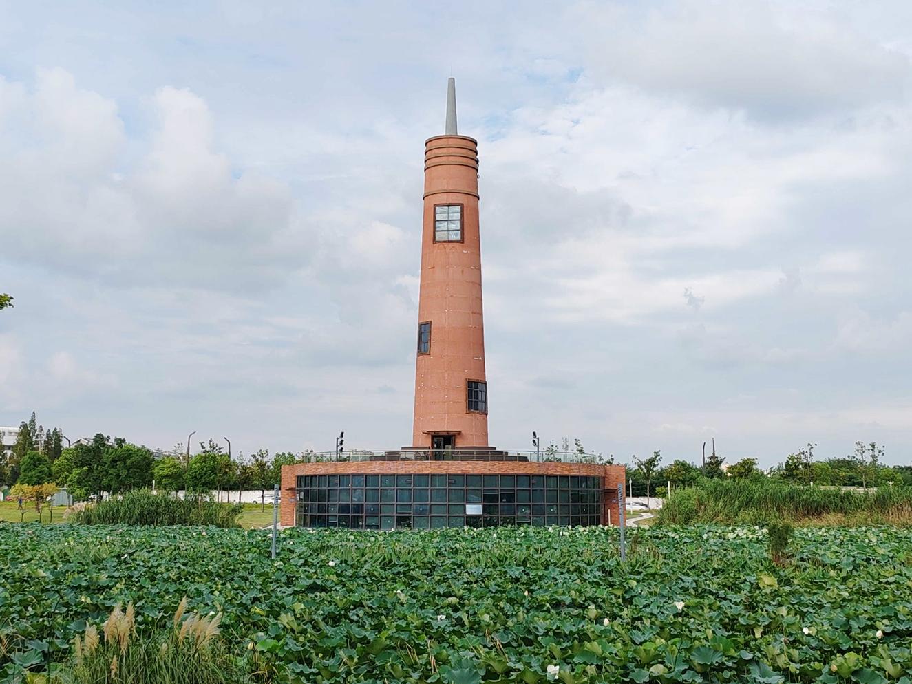 在七里河公园,一个高立的红色景观塔特别引人注目。这里原先是一些厂房,有一个高烟囱。在规划建设七里河公园时,规划设计人员便打造了这一烟囱造型的景观塔,并变身为城市书房。