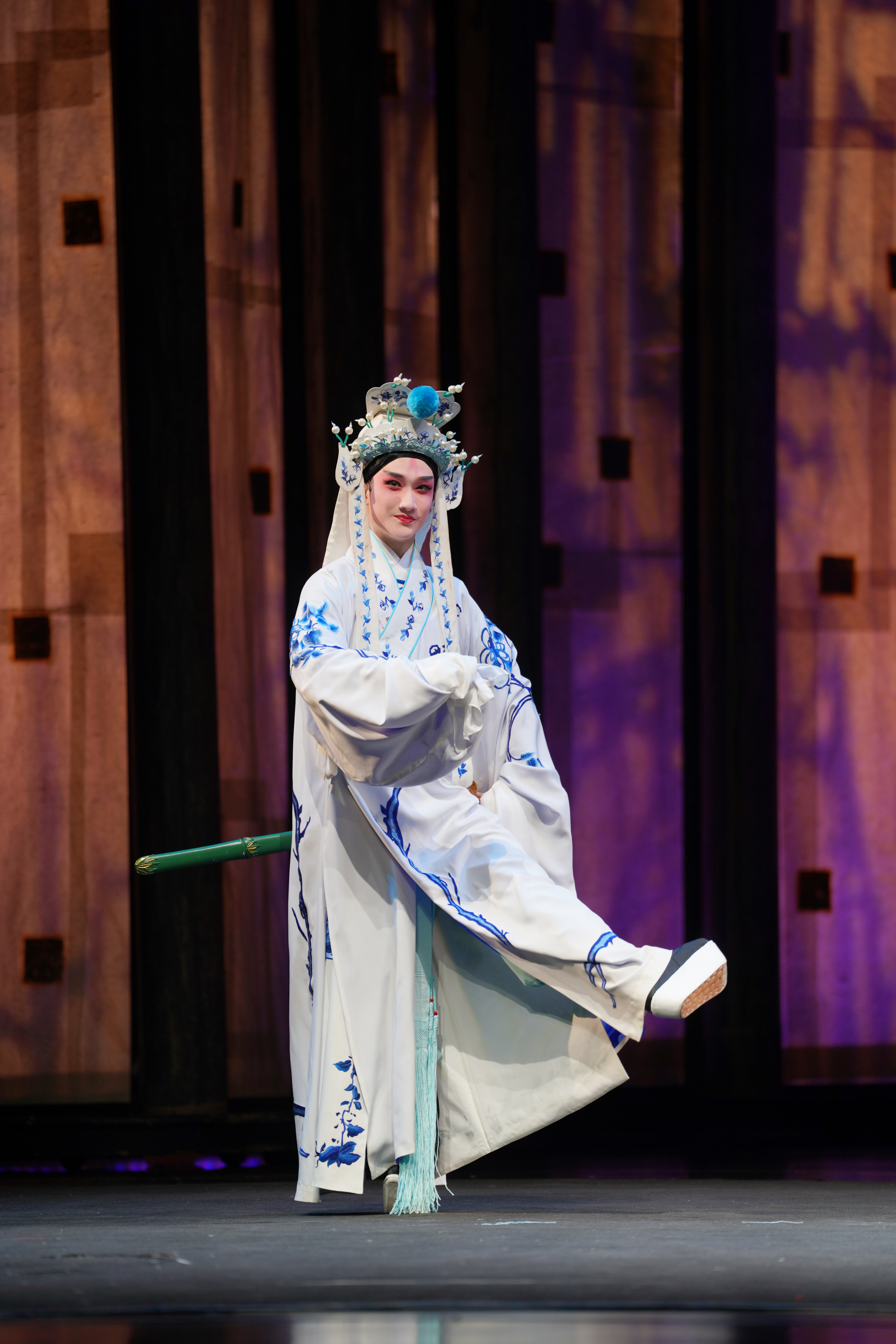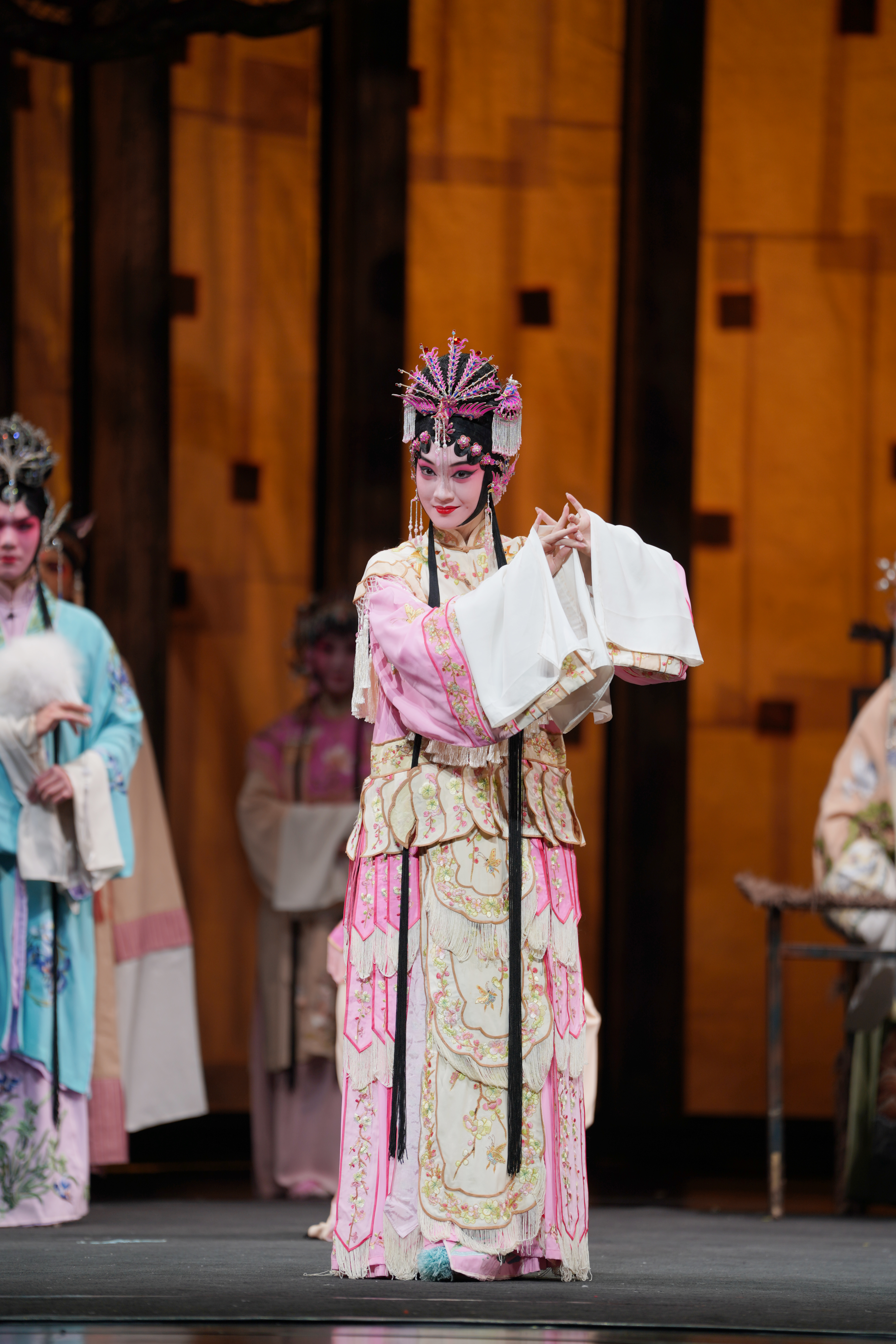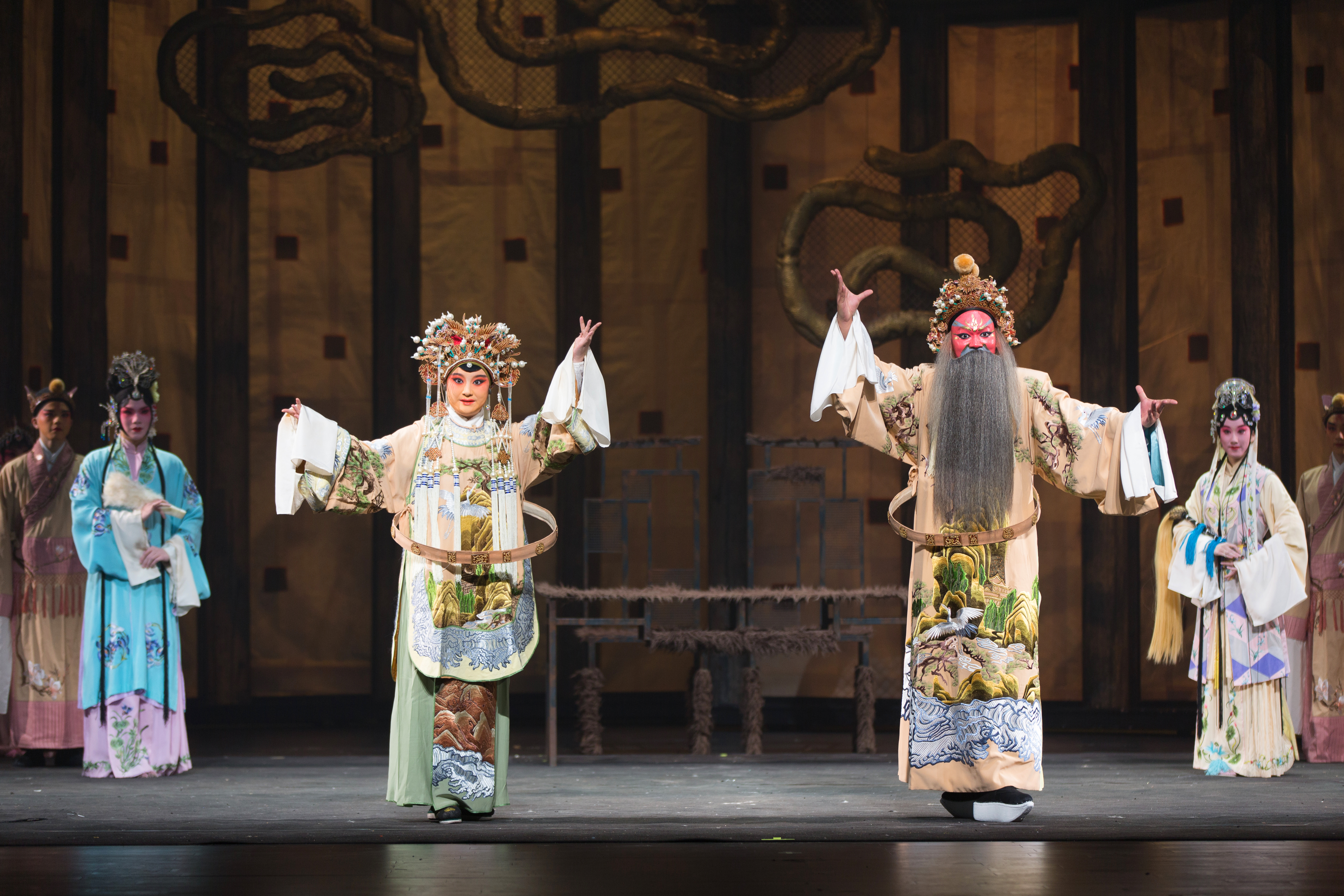 31日晚,青春版《南柯梦》上本开演,大幕拉开,满眼青春靓丽。文武双全的淳于棼、端庄大方的瑶芳公主、威严庄重的槐安国蚁王蚁后、娇俏可人的琼英郡主……生旦净末丑,昆五代行当齐全,扮相俊美,惊艳全场。剧情层层递进,渐入高潮。最后一折“瑶台”,瑶芳公主戎装上阵,淳于棼更是扎上了大靠,舞剑耍枪,英姿飒爽,一段酣畅淋漓的武戏开打,为《南柯梦》上本画上圆满句号。