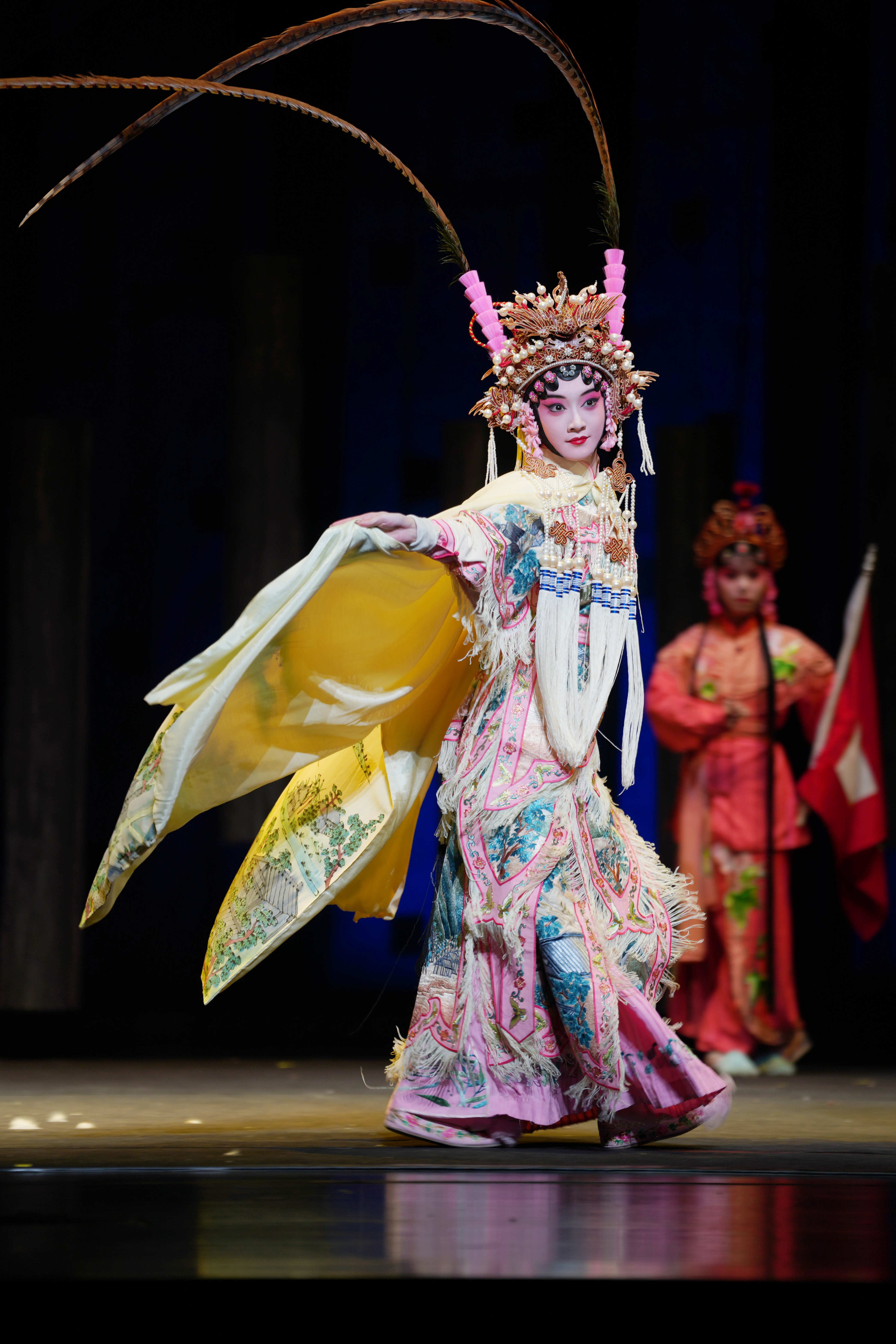 朝夕排练中,青春的力量在凝聚。前一刻还嬉笑追逐、组队开黑的00后,在贴片簪花、吊眉上妆的那一刻,角色仿佛就附体了。登上舞台,绦子大带,水袖翻飞,扮上了,好像就变成了剧中人。