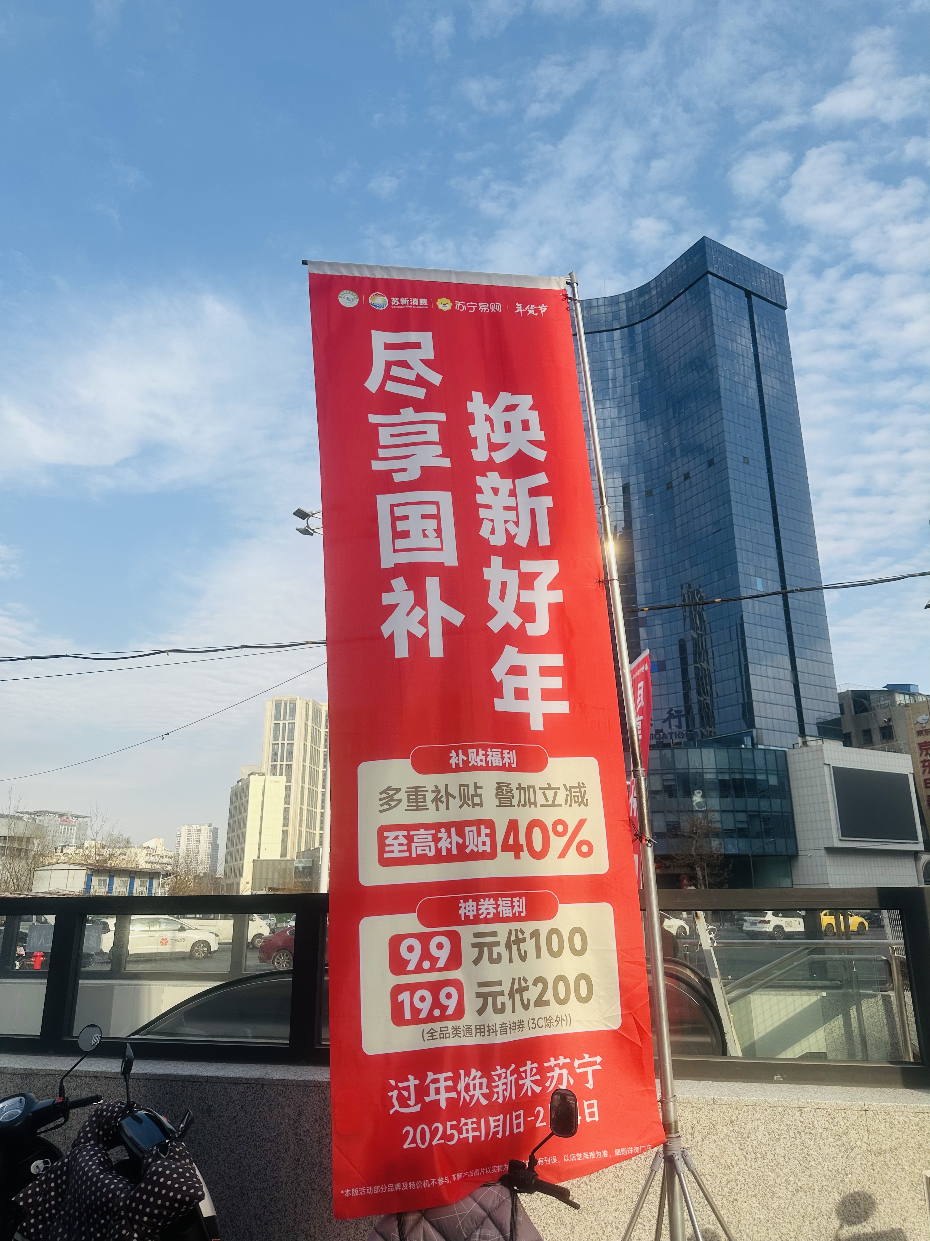临近年底,年味渐浓,门店早早挂起了灯笼、气球,“尽享国补换新好年”的红色小旗从门口一直插到了马路边,徐凤萍和同事们个个憋着劲,想抓住这一波消费热潮,再多开几笔单。