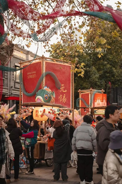 据了解,“蛇序”市集将持续至2月14日,以“重温记忆中的中国年”为主题,聚焦无锡本土记忆与非遗技艺等传统民俗,全方位呈现春节之美。灵蛇竹编美陈、花灯布置以及总台春晚无锡分会场套章的亮相,让整个市集充满了浓厚的节日氛围,为市民与游客带来一场沉浸式的文化盛宴。