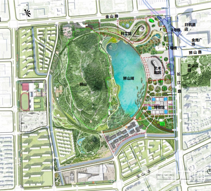 据介绍,狮山文化广场占地1213亩,总投资约62亿元,总建筑面积30万平方米,利用苏州乐园及其配套项目腾退旧址,依托狮子山优美的自然环境与资源禀赋,按照卷轴环绕、山水环抱的规划理念,将多个市级项目融入开放性山水公园,完善苏州文旅公共服务设施,打造了城市公共科学文化艺术中心。