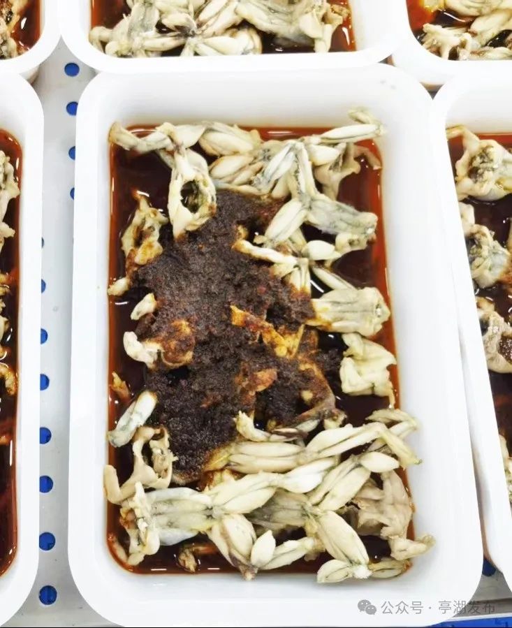 作为亭湖区水产精深加工企业代表之一,位于黄尖镇黄尖社区的蛙老大家庭农场早已走在前列。该农场目前承包108亩地开展“稻蛙”水产养殖,年养殖量超30万斤。与淮阴工学院合作,自主开发出3种口味的食品,注册“蛙良记”商标,产品销售至大润发、永辉、雅家乐等商超以及各地农贸市场,覆盖整个华东地区,年销售额达600万元。“为了进一步提升产能,我们又投入了超70万元,自主研发生产加工设备,预计5月份投产使用,到时候一天就可处理水产2000斤。”该农场负责人吉云峰介绍。