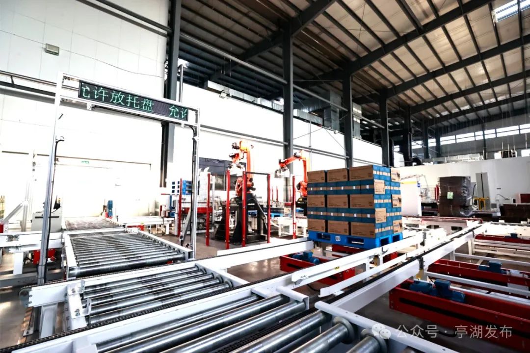 在位于新洋经济区的奥夫食品股份有限公司采访时看到,智能仓储区内,产品自动灌装完成后进入传送带,自动装箱、激光喷码打印生产日期、批号,再由机器人码垛后进入智能化立体仓库。