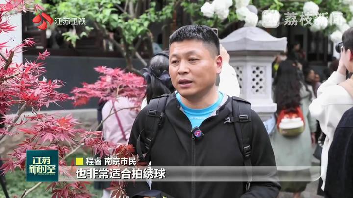 南京市民程睿说:“今天的天气、光线非常适合拍绣球,画面有那种中式的古典美。”