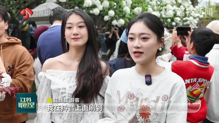 荔枝新闻中心记者郑伟说:“这里是南京清凉山崇正书院。经过一年多的修缮,今年4月1日,书院正式恢复开放。眼下,书院的木绣球正值盛花期。花球如云似雪,与古色古香的建筑交相辉映,将中式美学展现得淋漓尽致,一跃成为春日顶流,吸引不少市民游客前来打卡拍照。”