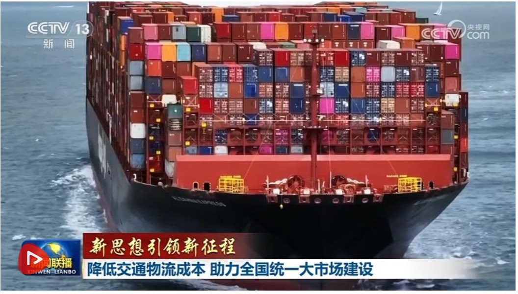 央视网消息(新闻联播):习近平总书记指出,物流是实体经济的“筋络”,联接生产和消费、内贸和外贸,必须有效降低全社会物流成本,增强产业核心竞争力,提高经济运行效率。今年以来,我国围绕强网络、调结构、促融合,出台一系列有效措施,打通交通物流领域堵点卡点,推进全国统一大市场建设,为经济高质量发展提供有力支撑。