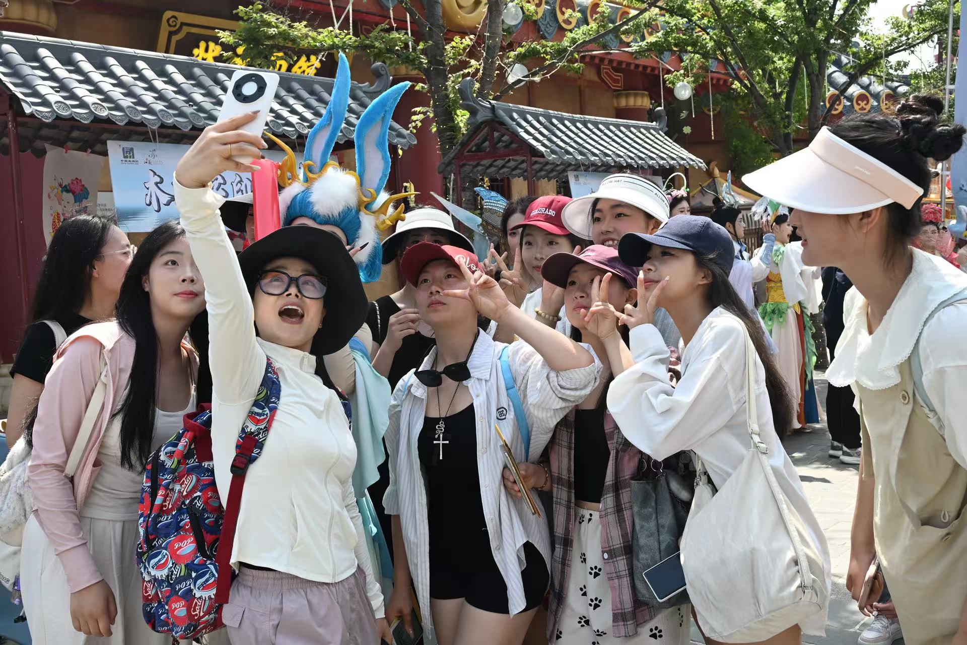 5月19日适逢周一,但当天上午近30摄氏度的烈日下,淮安西游乐园内依旧人头攒动。“十点半有开幕式!”来自天南海北的游客间不时传递着这个信息,整个园区也被中国旅游日的宣传海报包围,他们中的大部分不是专门为旅游日开幕活动而来,但无不充满期待,“听‘中国旅游日’这个品牌就知道‘有好事’!”