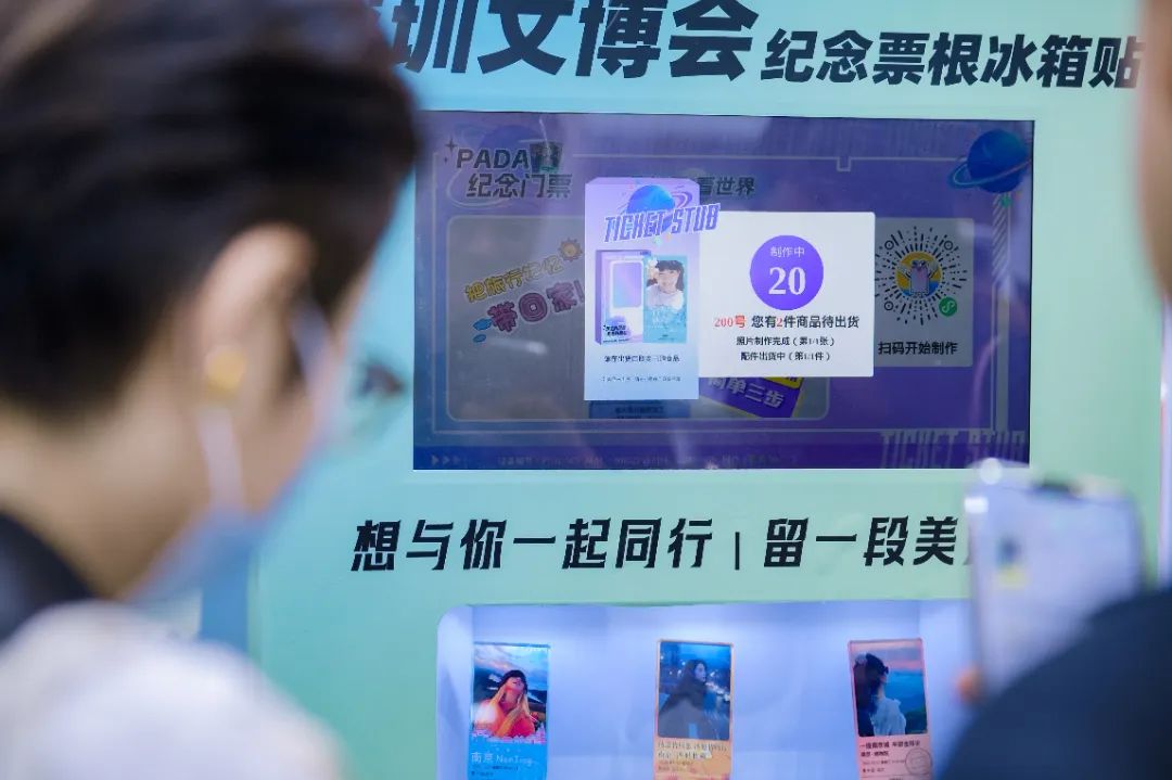 展会现场,PADA纪念门票冰箱贴的自助打印设备吸引了不少观众驻足体验。其配套的工业级设备拥有强大功能,支持6秒快速打印与自动裁切。