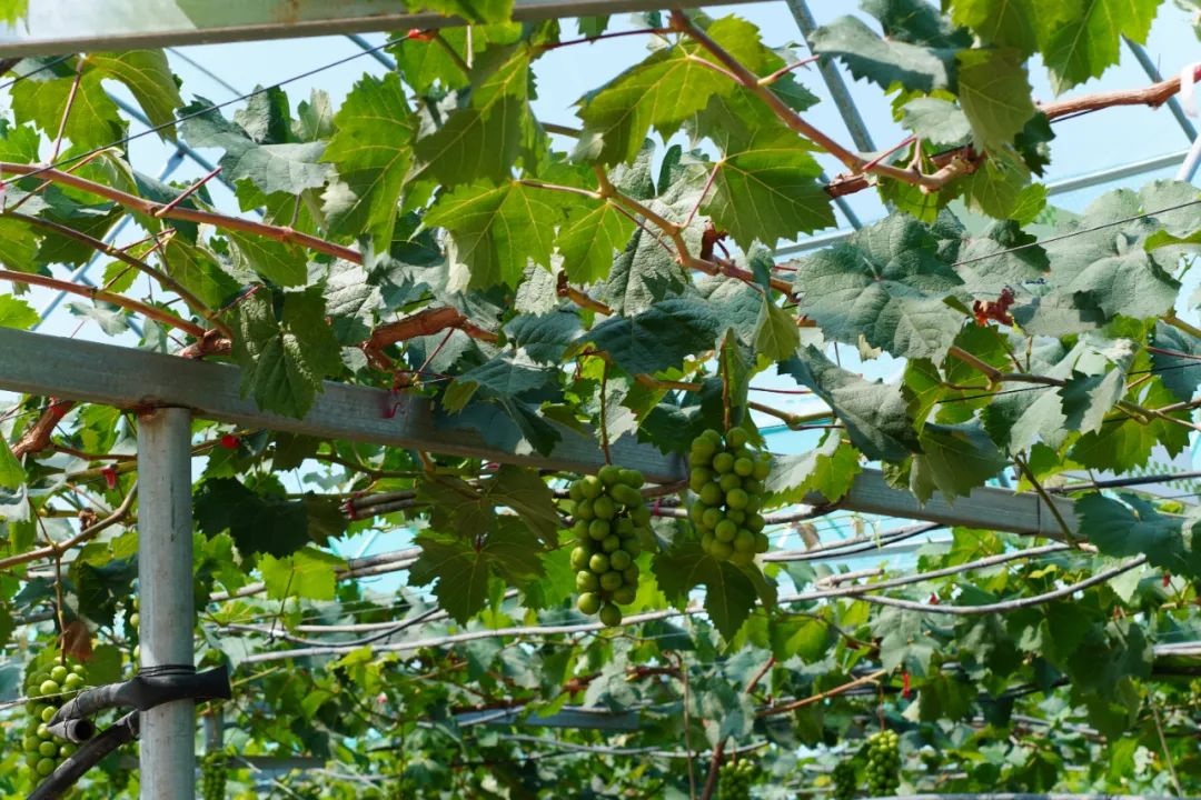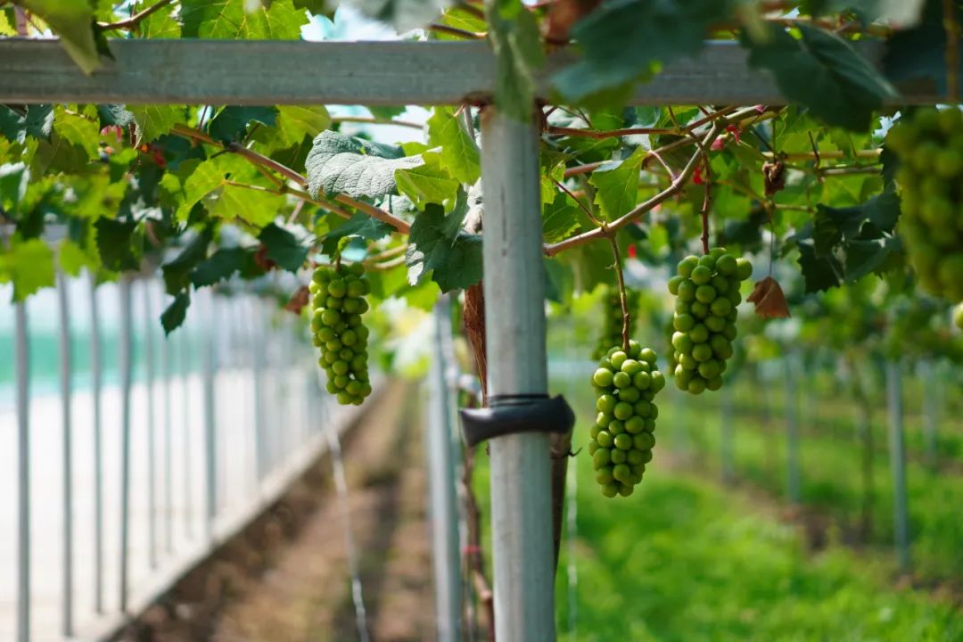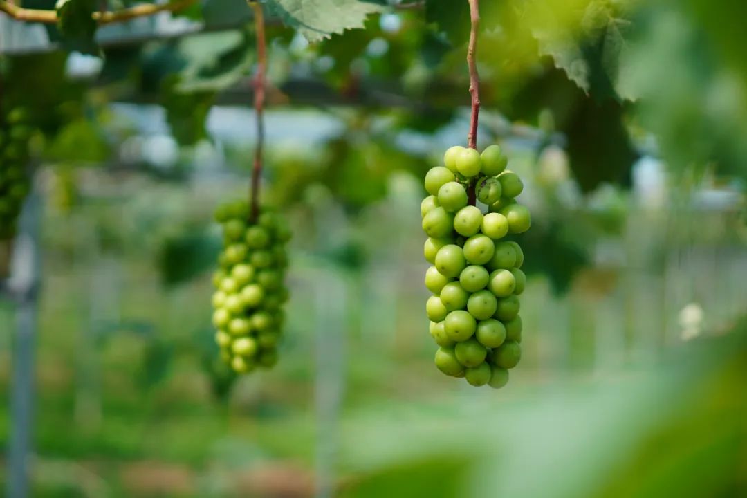 正值挂果期,棚内串串葡萄青翠饱满,丰收在望。恒创农业专注高端品种,巨峰、妮娜皇后、阳光玫瑰在此扎根。钢架大棚、智能喷滴灌、肥水一体、虫情监测等先进技术覆盖全流程,机械化率超80%。严格控制亩产只为颗颗葡萄达到精品标准。