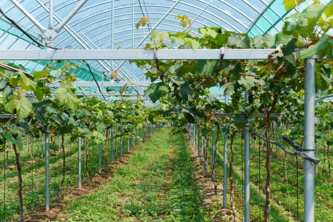 在羊寨镇恒创精品果园的智能化葡萄种植大棚,大棚顶部专门预留了导流水槽,水槽两端设有排水口,保证夏季汛期的雨水影响不到葡萄的正常生长。同时,大棚内还安装了智能水肥系统,能够精准控制并保障葡萄的生长用水,实现精品化培育。