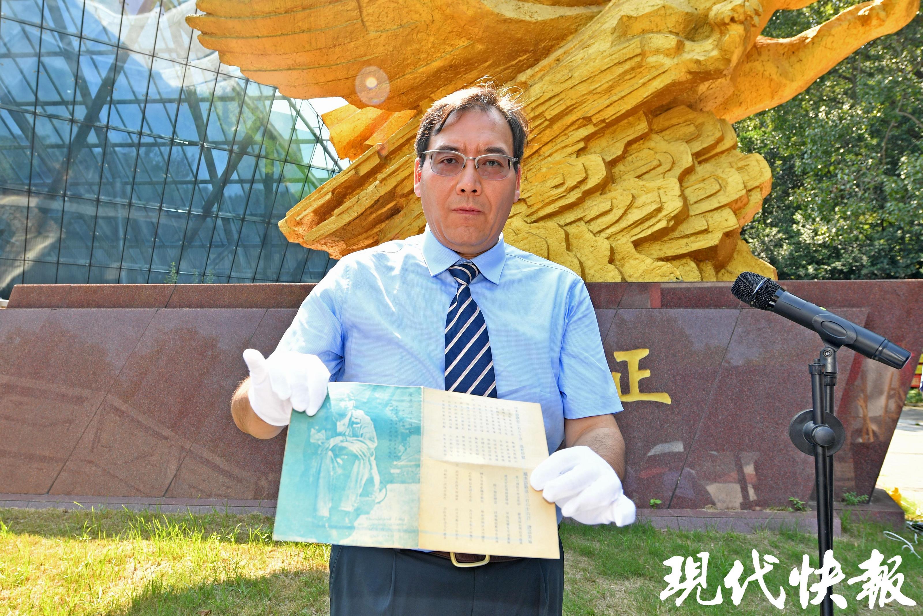 抗日英烈陈端纮的侄孙陈钢远道而来,将陈端纮在抗战时期写下的日记等珍贵文物史料捐赠给南京抗日航空烈士纪念馆。