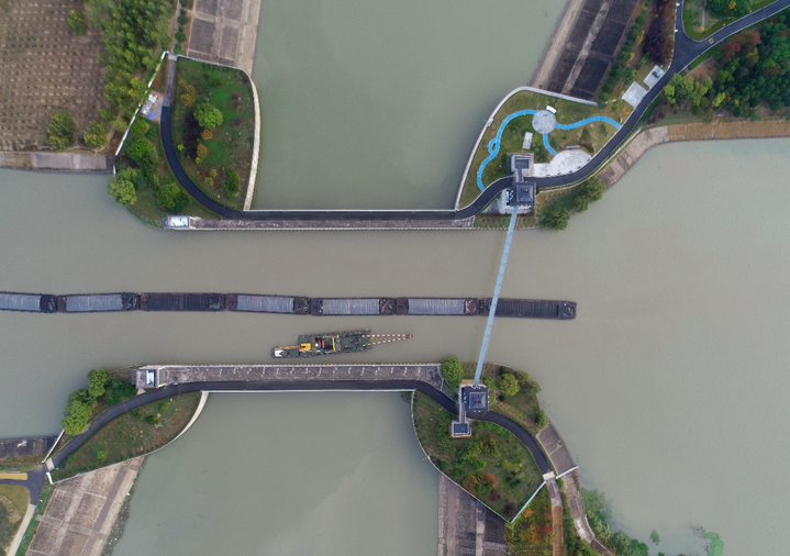 作为淮河入海水道二期工程的核心节点,淮安水利枢纽大运河水上立交建成便是“亚洲最大水立交”。京杭大运河、苏北灌溉总渠、淮河入海水道,三条载入史册的人工水道在此交汇,“两横一纵”的格局间,藏着建设者们最棘手的难题。“二期工程要紧邻布置,水系又密、水头还高。”王洪玉抬手比划着枢纽布局,“我们先做好基坑防渗工作,再通过开挖临时导航明渠来保障运河航运,工程在紧锣密鼓地推进。”