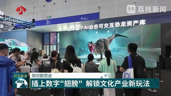 虚拟古乐器吸引许多观众前来体验,灿烂的敦煌壁画则在隔壁以声光电的形式立体呈现,令人震撼。整个数字文娱展区,像这样的趣味体验随处可见:5G、VR大空间竞技游戏让玩家放下电脑,沉浸式对战;AI动态恐龙时刻给人回应,仿佛电子宠物;动画IP苏东坡化为数字人,与参观者谈古论今……交互,成了数字时代文化产业的“流量密码”。