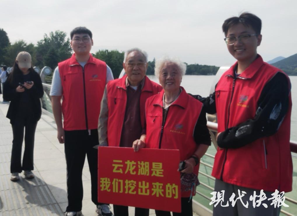 在云龙湖畔,现代快报记者见到了两位特殊的“见证者”——1958年参与挖湖的蒋忠良、徐瑞英夫妇。两位老人均出生于1933年,老家常州,1956年作为人才被引进徐州,在徐州生物工程职业技术学院任教,如今退休后定居云龙湖边,每日来此锻炼休闲,与这片湖水相伴半生。