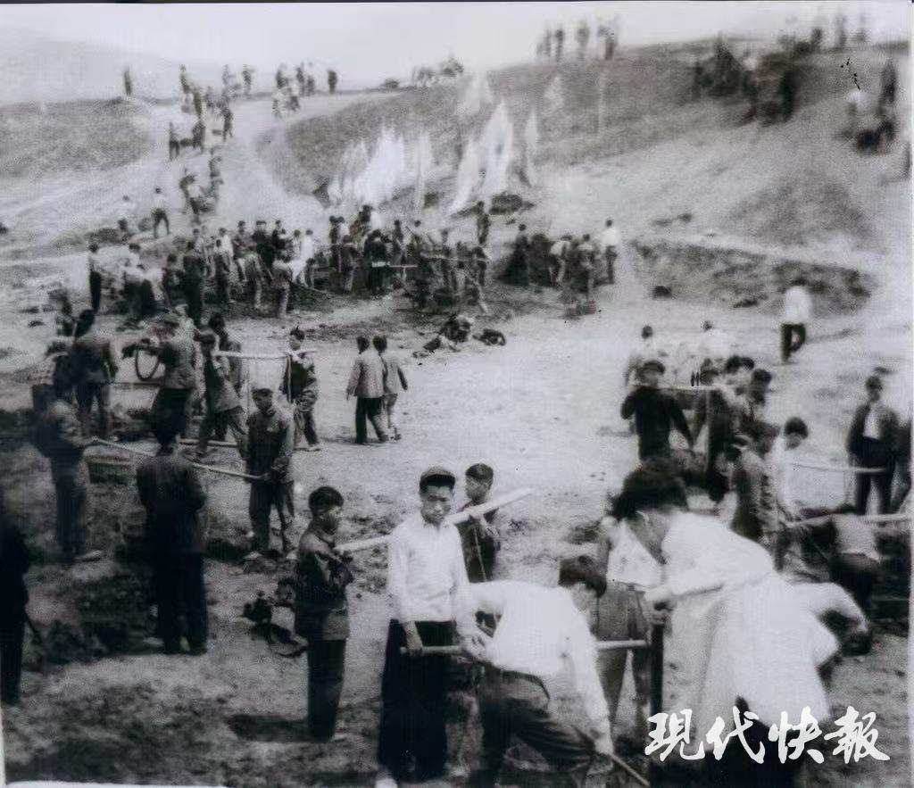 “那时候全是人力劳动,主要是抬大筐、推平车、挑扁担,很辛苦。”93岁的蒋忠良回忆起当年的场景依旧动容。1958年云龙湖挖湖运动启动,各界力量广泛参与,蒋忠良夫妇也加入义务志愿服务。城市出生的徐瑞英起初不会用扁担,便被分配去推平板车,“我在前面拉,男同志在后面推,路还是上坡路,就这样艰苦过来的。但心里开心得不得了,大家劳动完都在笑,特别团结,互相照顾。”