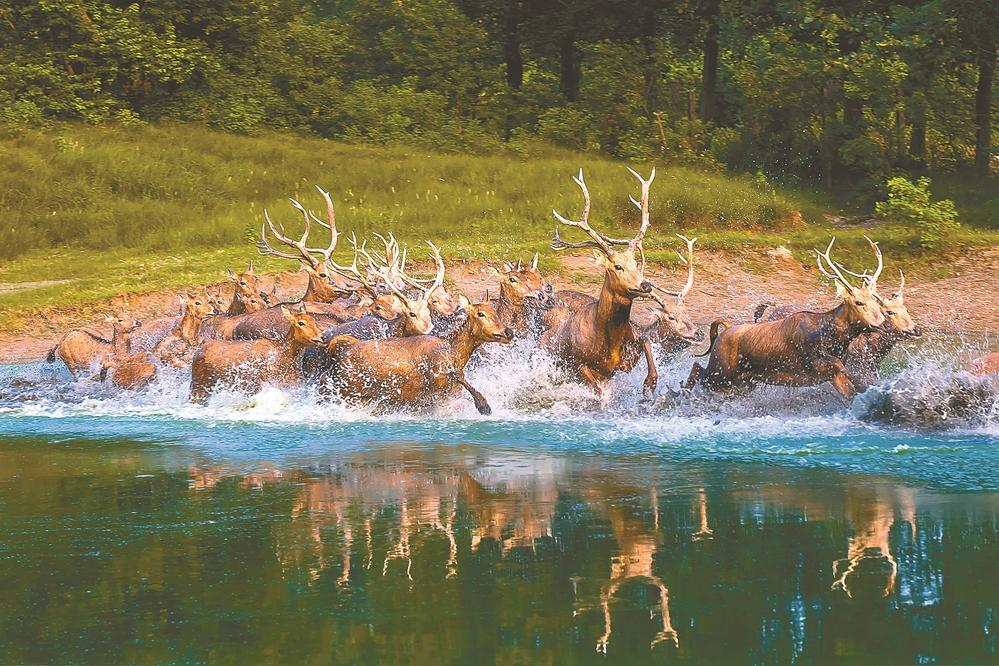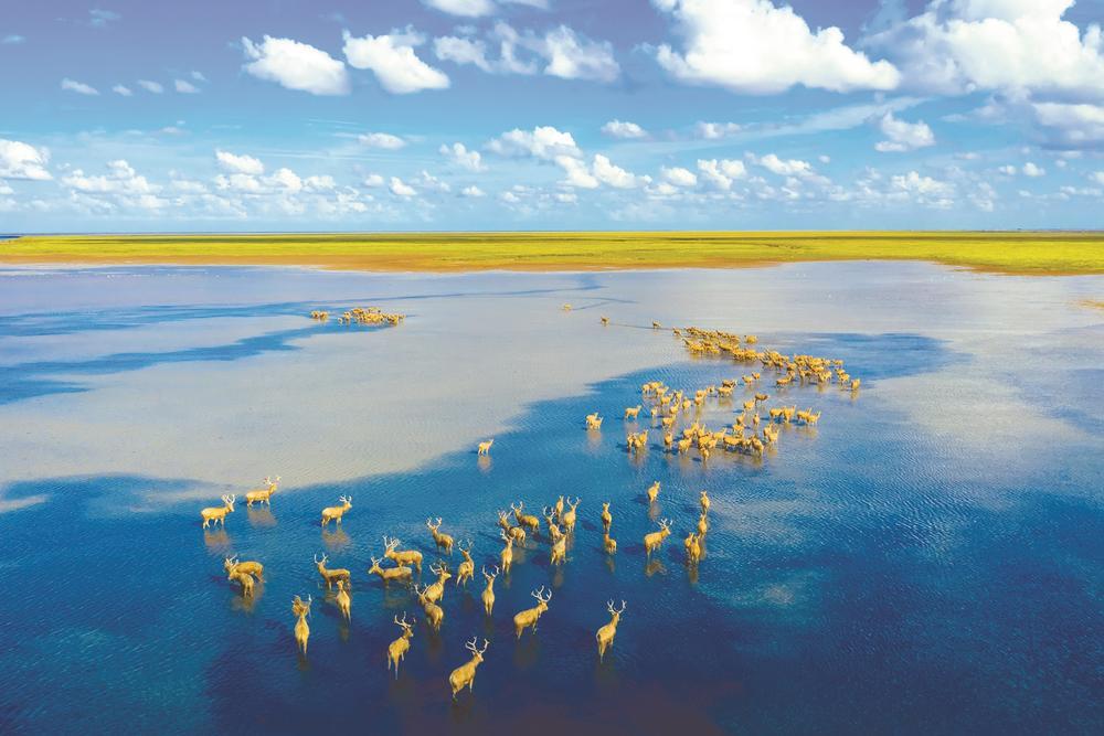 大丰区地处世界自然遗产核心区,孕育了麋鹿、珍禽两个国家级自然保护区,展现了海洋、湿地、森林三大生态系统的和谐共生。江苏大丰麋鹿国家级自然保护区的麋鹿从1986年回归至今,总数超8000头,总量占据世界麋鹿种群数量约70%。
