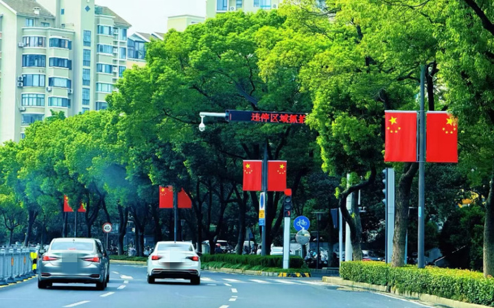 在南京中山北路、上海路、云南路等地,一面面五星红旗迎风飘扬,成了街头一道道亮丽的风景线。据南京城管部门统计,南京共利用路灯杆设置国旗26306组。
