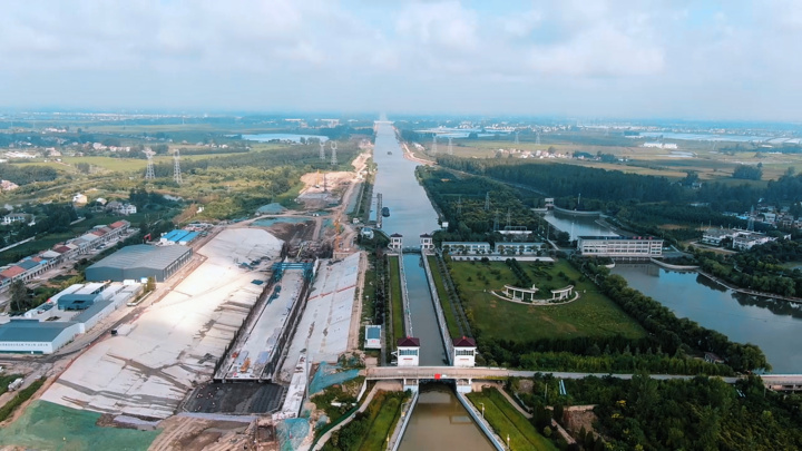 “石港大桥等多座旧桥已拆除、桩基施工推进,航道整治工作全面展开,船闸建设多点突破,石港船闸上、下游围堰土方填筑及上游连接段道路填筑稳步推进,蒋坝船闸已完成老船闸下闸首拆除。”淮安市港航中心主任罗衍庆介绍,项目建成后,将有效缓解苏北运河和淮河出海航道的航运压力,全面释放区域水网通过能力。