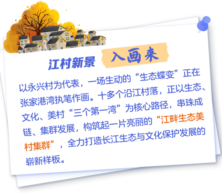 漫步在张家港湾边的永兴村,3.6公里长的江岸线上,飞鸟掠江而起;永兴园路上,年轻人踩着单车悠然而过;亲水平台上,阿姨们红绸扇翻飞;“小游园”里,孩子们在追逐嬉戏......